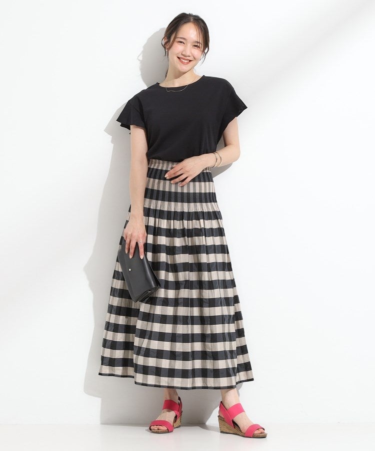 着丈がやや長めのシルエットで、気になる腰やヒップをしっかりとカバーしてくれます。