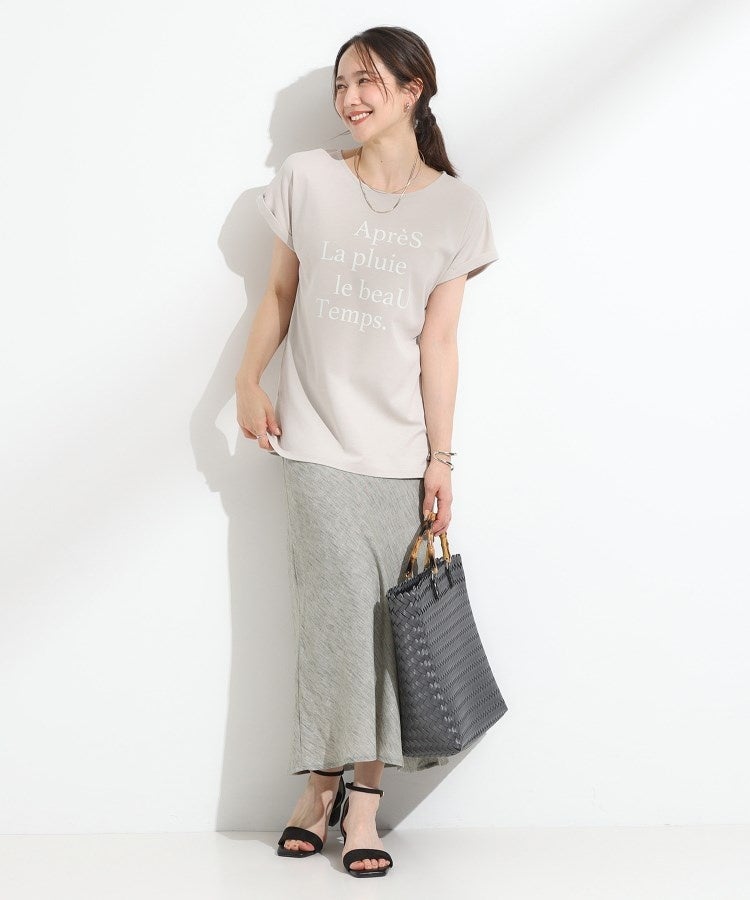 ロゴプリントが施されたカジュアルなデザインですが、滑らかで上品な素材感でラフな雰囲気になりすぎず、大人におすすめのTシャツです。