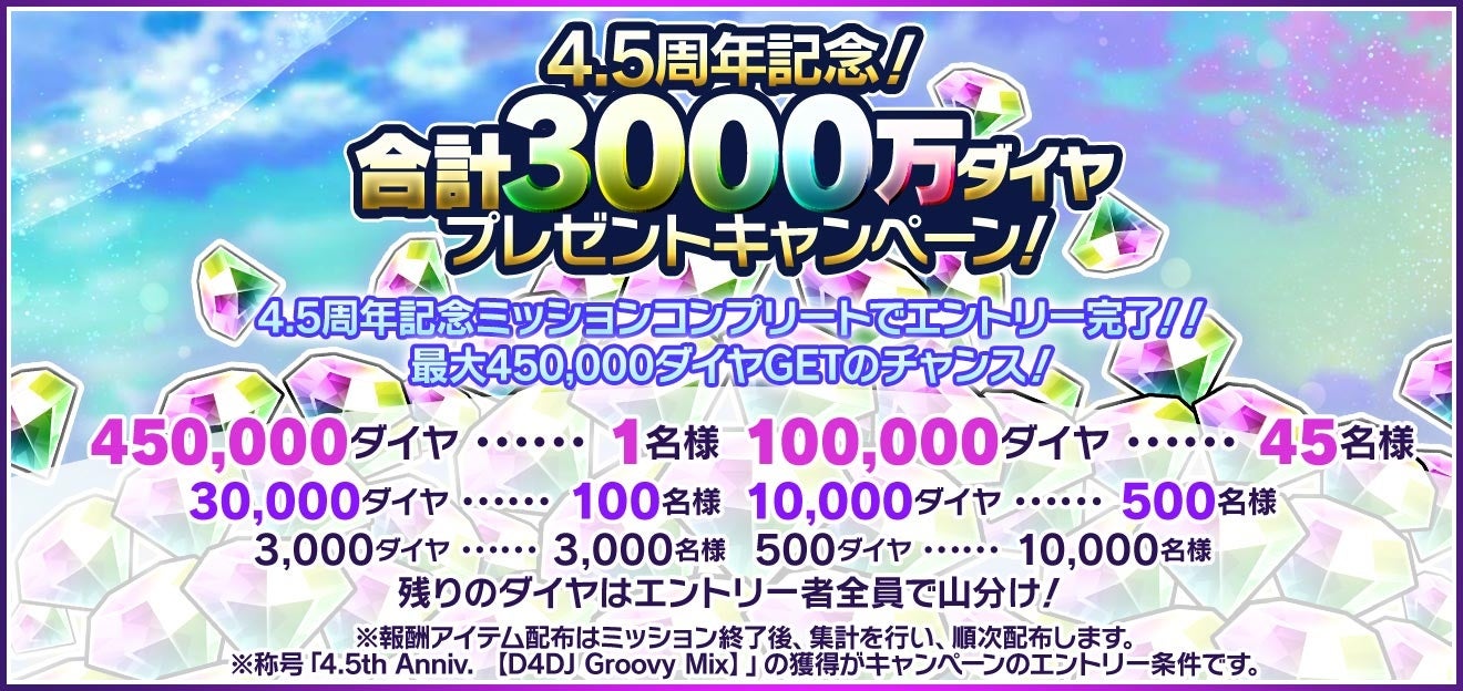 ■4.5周年記念!3,000万ダイヤ山分けキャンペーン