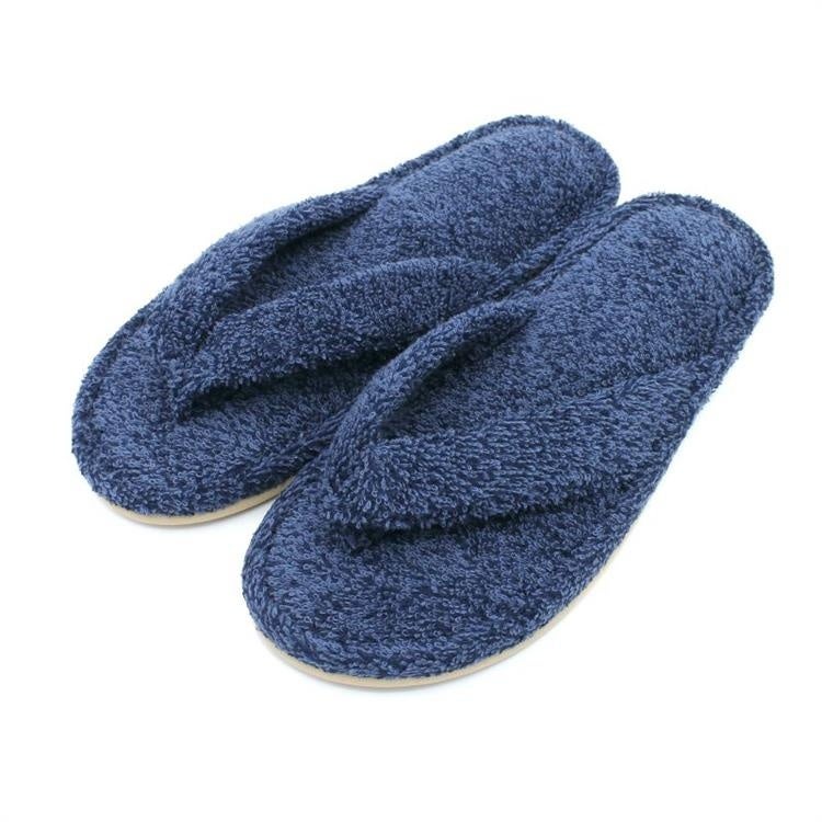 今治産のタオル地を使用した洗えるスリッパ。染まり具合が異なる2種類の糸による独特な質感。スリッパ専門の縫製メーカーがひとつひとつ丁寧に仕上げた、こだわりの履き心地。