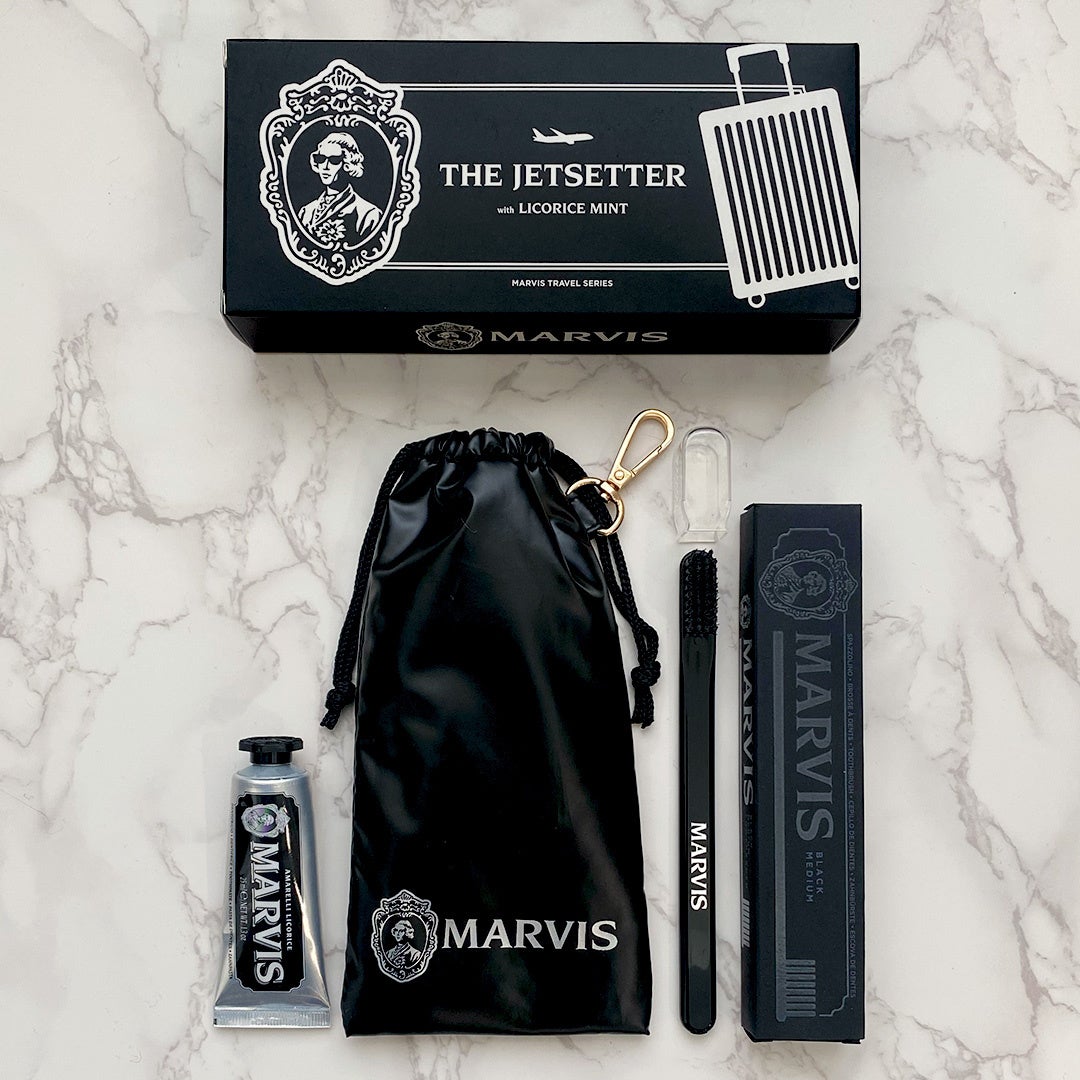 リコラスミントフレーバーの歯磨き粉と歯ブラシがオリジナルポーチに入ったセットアイテム。柔らかいパファー素材のポーチは、かさばりにくく持ち運びにも便利。