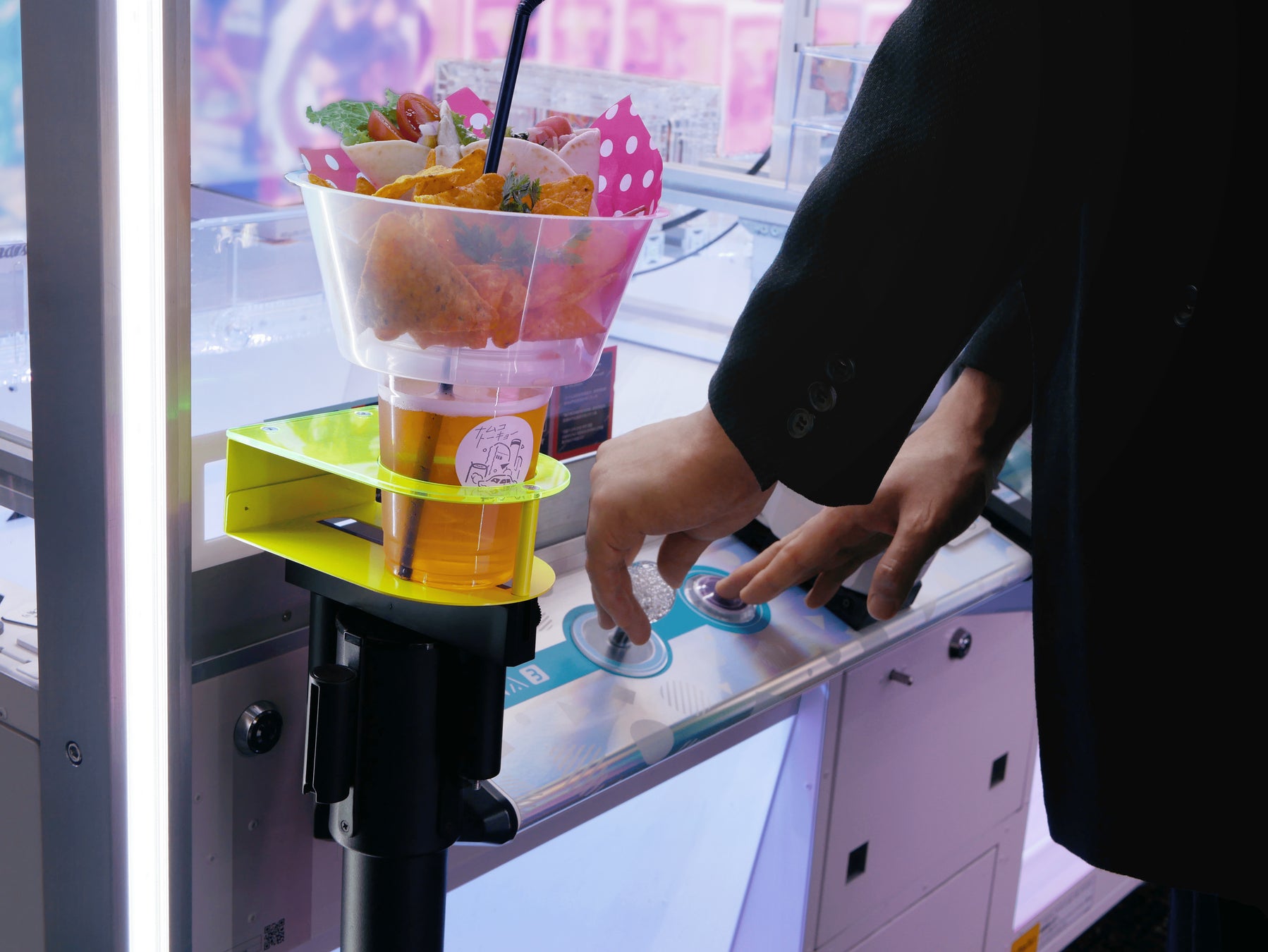 アミューズメントエリアではドリンクを飲みながらクレーン機が遊べるようにドリンクホルダーを設置。
