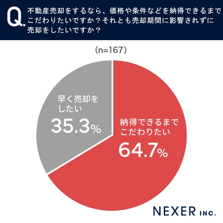 【将来的に不動産売却を考えている男女に調査】64.7%が、早さよりも「納得できるまでこだわって売却したい」