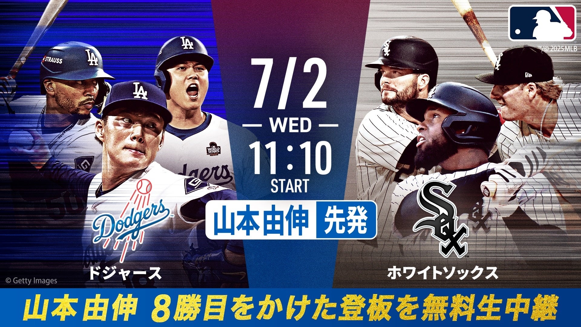 「ABEMA」にてドジャースvsホワイトソックスとの3連戦を生中継!山本由伸先発予定の7月2日(水)は齋藤隆、杉谷拳士のダブル解説で無料にてお届け!