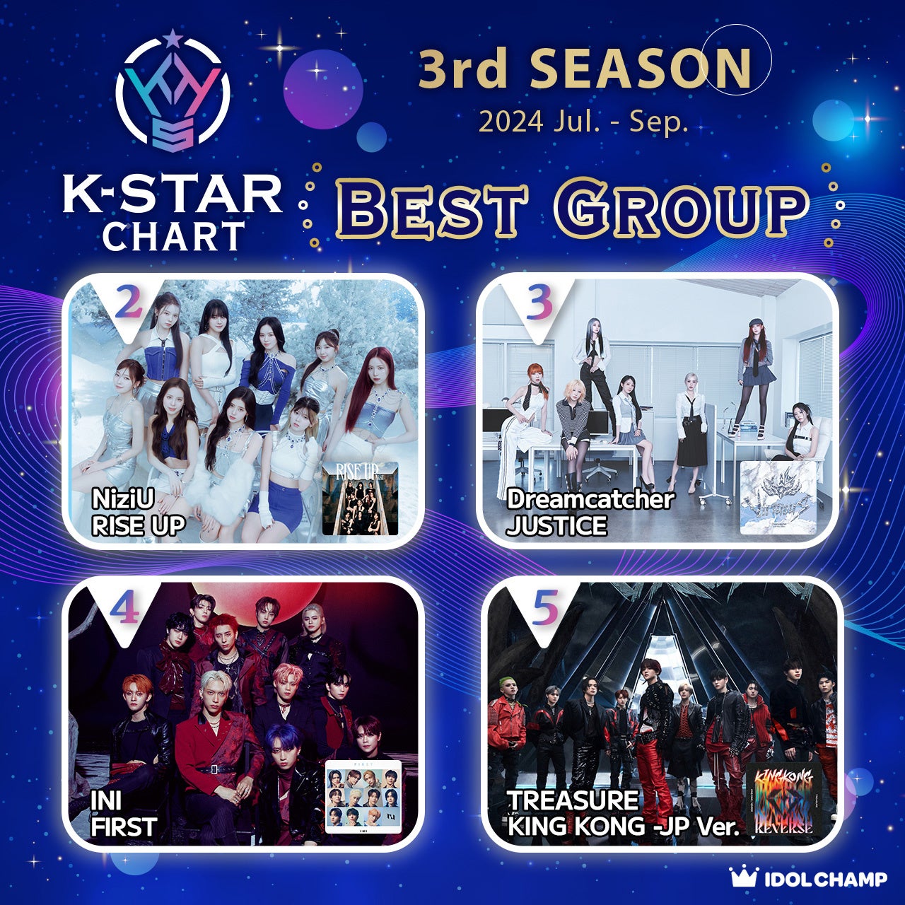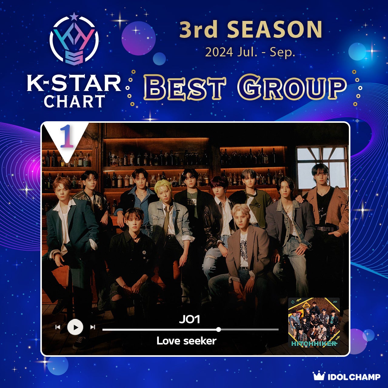 2024年1月よりスタートしたK-STAR CHART 2024年7月~9月の投票上位者を対象にした決算投票より、「3rd Season Chart」が確定。「Best Group」部門でJO1の「Love seeker」が1位に輝きました。