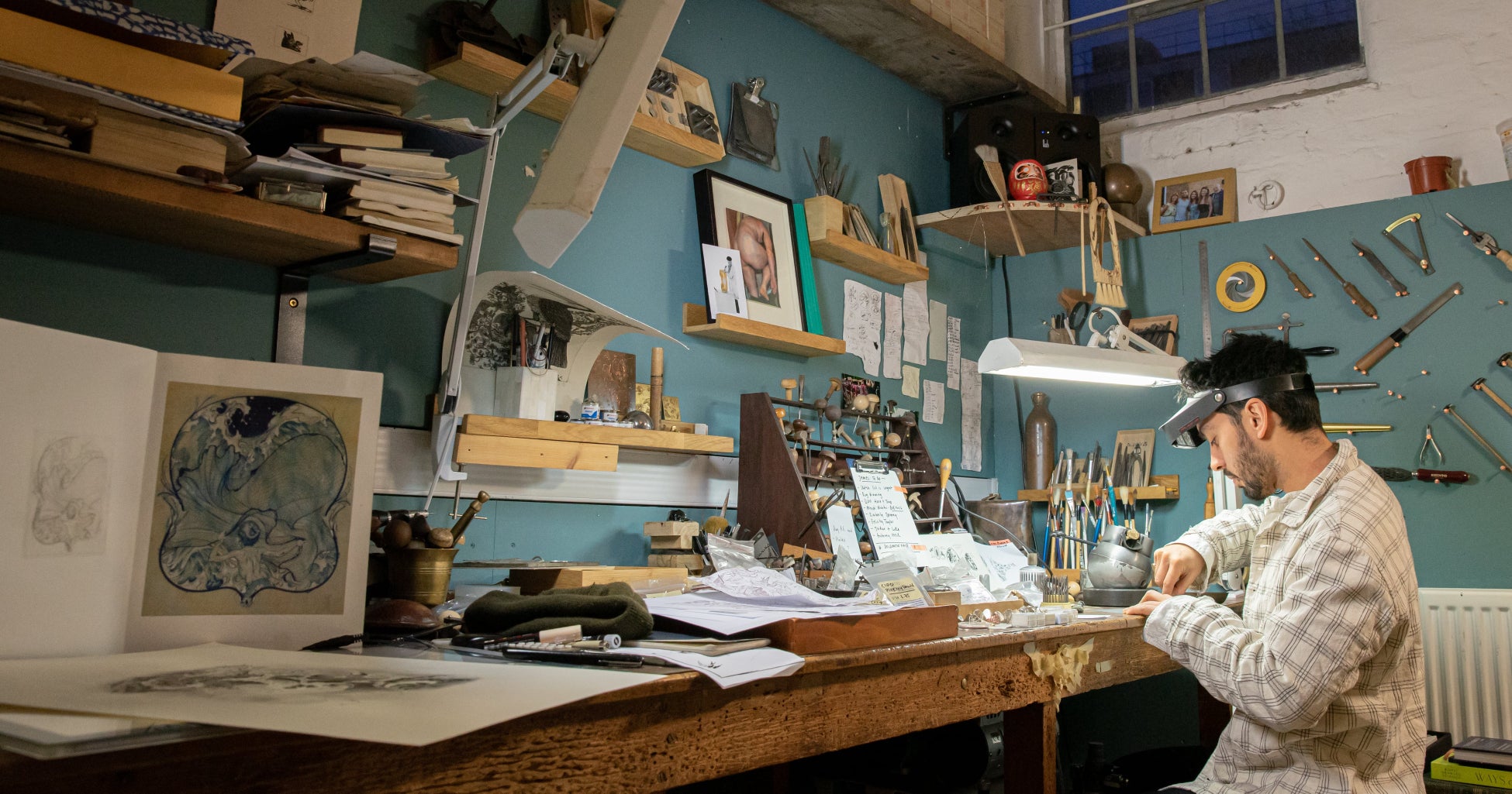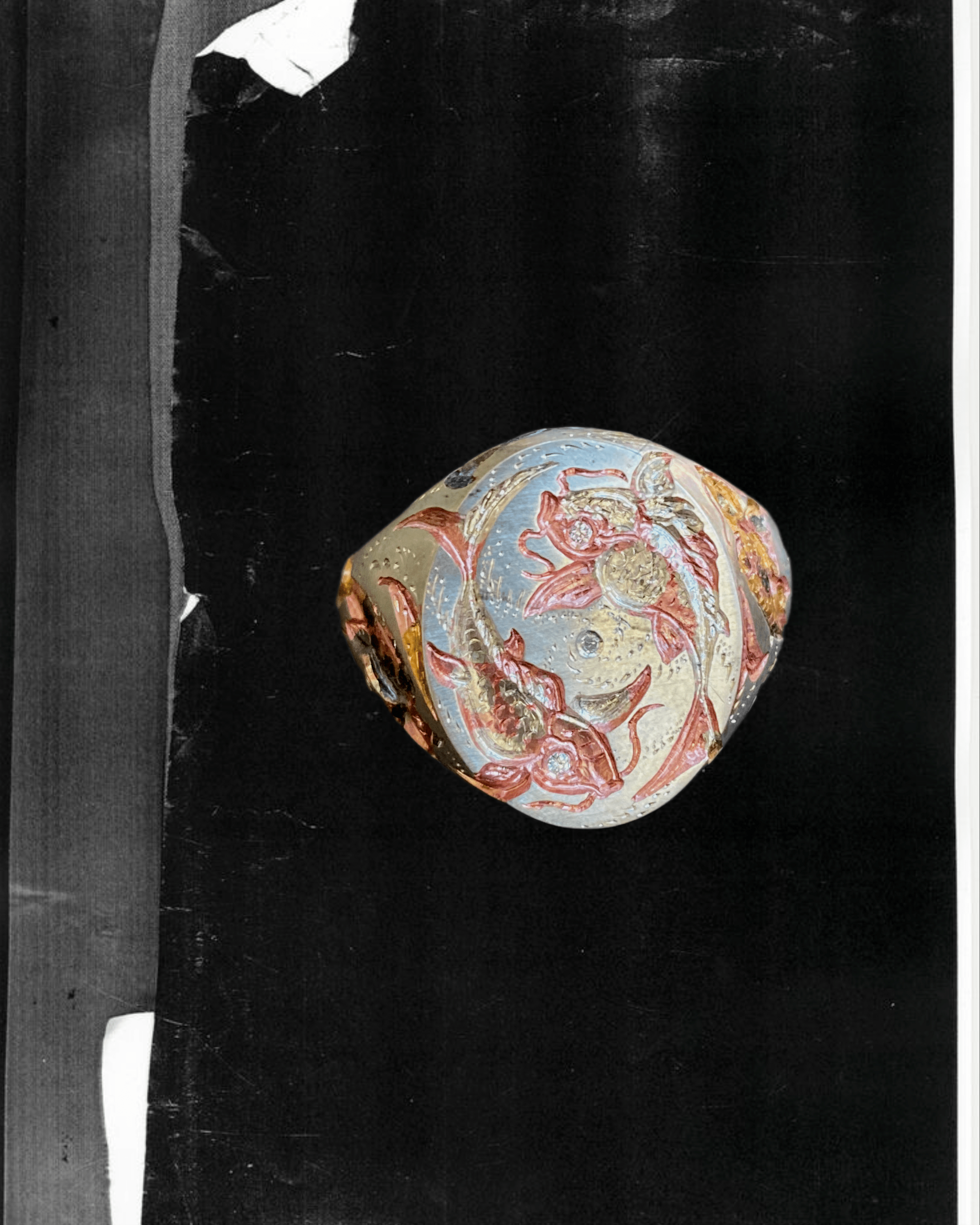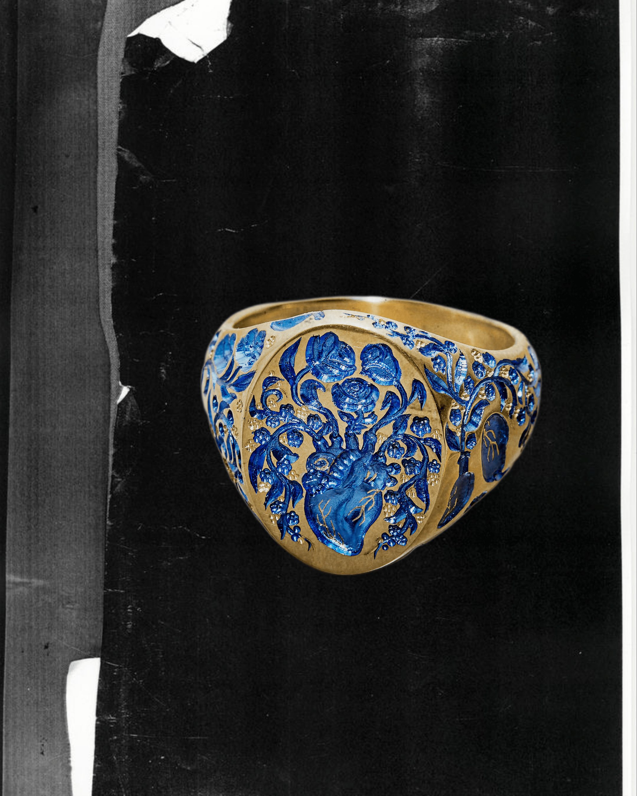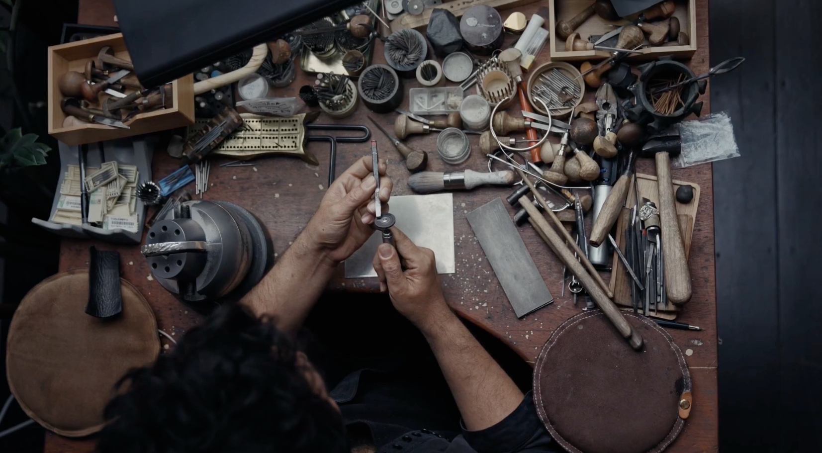 彼は、金細工職人のギルドを起源とする団体「ザ・ワーシップフル・カンパニー・オブ・ゴールドスミス」で象徴学と図像学を学びつつ日本でも彫金を学んでいたいう異色の経歴を持ち、ジュエリー製作のトレーニングを様々な土地で鍛錬に重ねながら今のエングレービング(彫金)のスタイルを確立。タトゥーの彫り師も目指していた時期もあり、オープンな視座で様々な国のカルチャーを吸い込んだデザインは正に芸術的で、一つの"枠"を超越したエングラーバー(彫金師)。