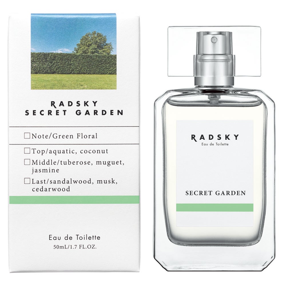 ラッドスカイは、時間、場所、天気などによって表情を変えていく空のように、自分を自由に表現する香りを提供し続けるフレグランスブランドです。「自由をまとう フレグランス」をブランドコンセプトにしており、新商品の「ラッドスカイ シークレットガーデン オードトワレ」は、グリーンや温かみを感じさせる春らしい「グリーンフローラルの香り」です。まるで時が止まったかのような静けさと、訪れる人々の秘密を受け入れるような心安らぐ場所をイメージした秘密の庭。その秘密の庭から見える、穏やかで澄んだ青空が香りのテーマです。先行発売後、香りが良いと好評です。