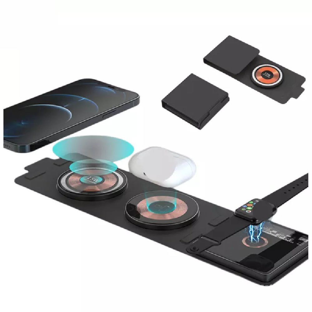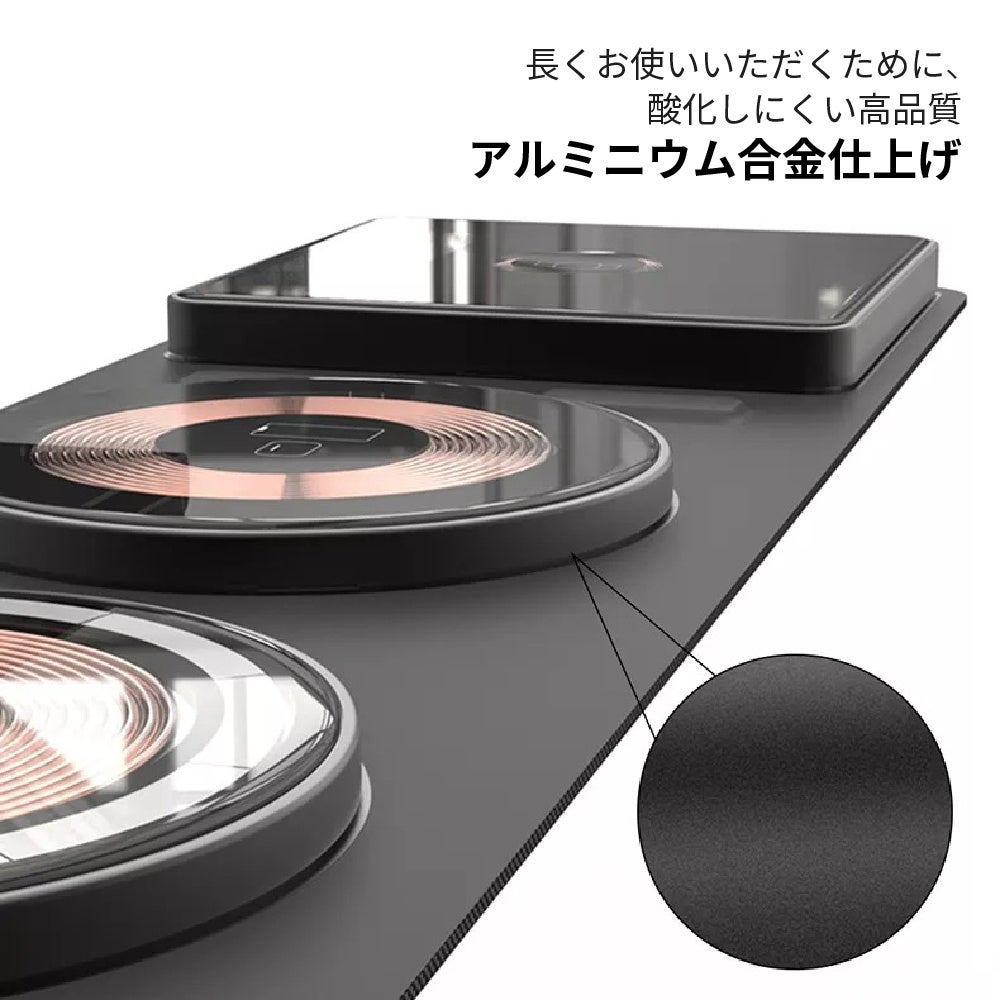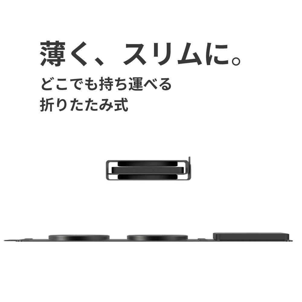 - 197g軽量コンパクト、広げた状態で3デバイスを同時充電。三つ折り式で、ポケットサイズで収納ができ、荷物を最小限にする便利なQiワイヤレス充電器