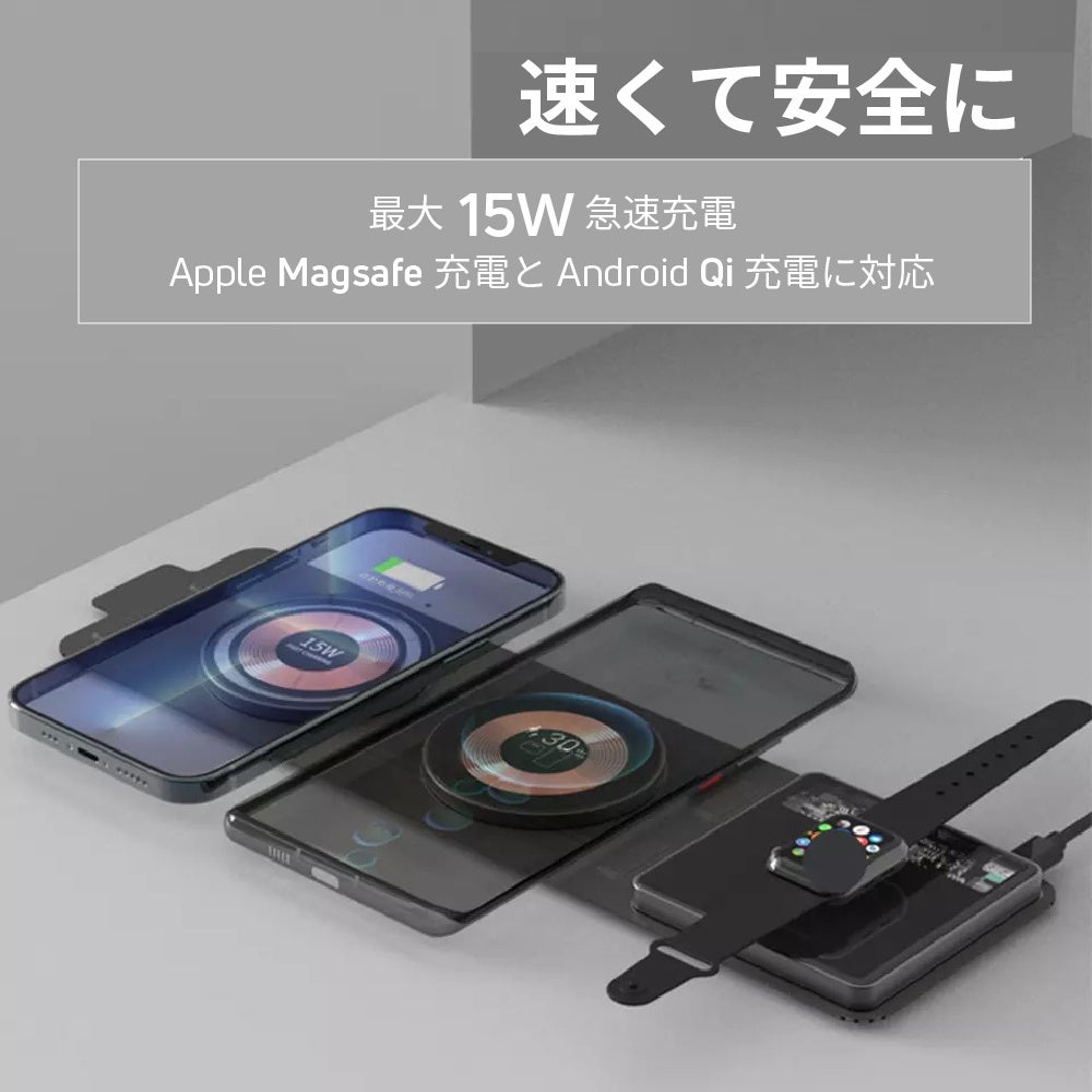 Appleのワイヤレス充電MagSafeに対応、iPhoneや AirPods、Apple Watchの充電に最適。