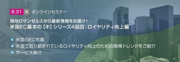 【トランスコスモスオンラインセミナー】現地ロサンゼルスから最新情報をお届け!米国EC基本の[キ]シリーズ4回目:ロイヤリティ向上編を8/31(木)に開催