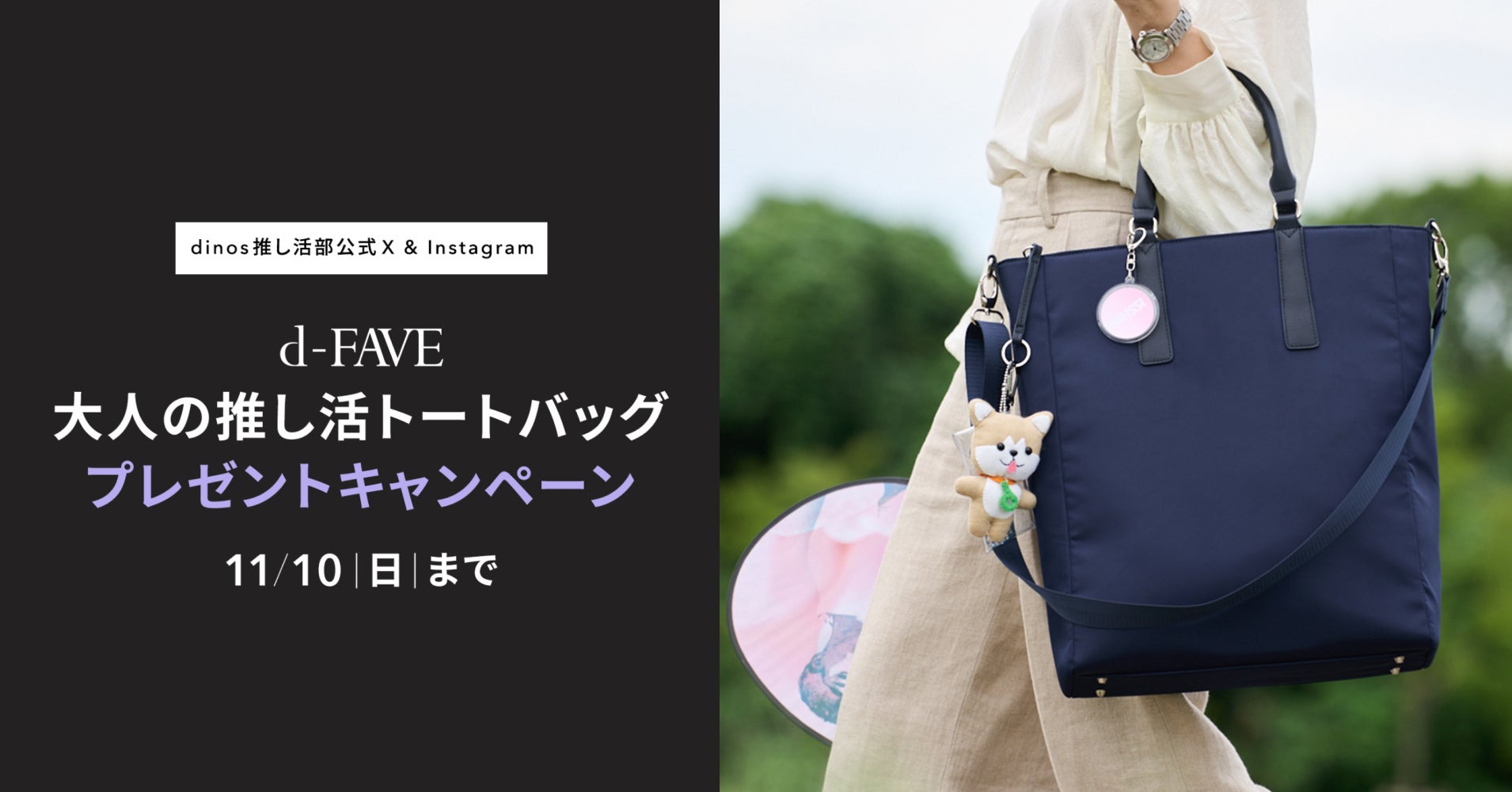 株式会社DINOS CORPORATION(本社:東京都中野区)は、2024年11月4日「いい推しの日」に第2回#ディノス推し色総選挙※を開催します。現在販売中でご好評いただいている「d-FAVE 大人の推し活トートバッグ」について、参加者に欲しい新色の番号を記入して投票していただき、その結果を商品開発の参考とさせていただきます。また、参加者の中から抽選で合計6名様に「d-FAVE 大人の推し活トートバッグ」をプレゼントするキャンペーンも実施いたします。