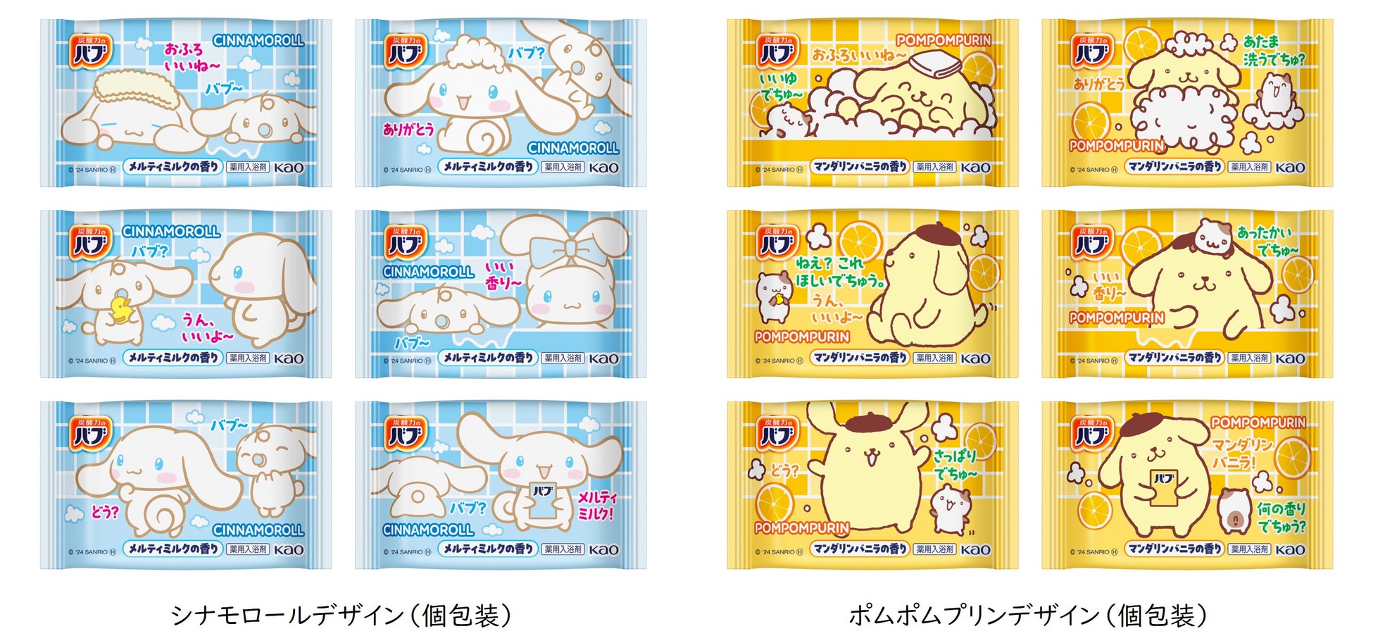 花王「バブ」からシナモロールとポムポムプリンデザイン登場! 2024年11月9日より新発売【数量限定】