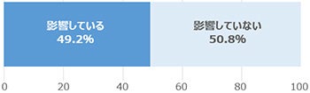■アルバイト経験が進路選択に影響している・していないは、約5割ずつで半々の結果
