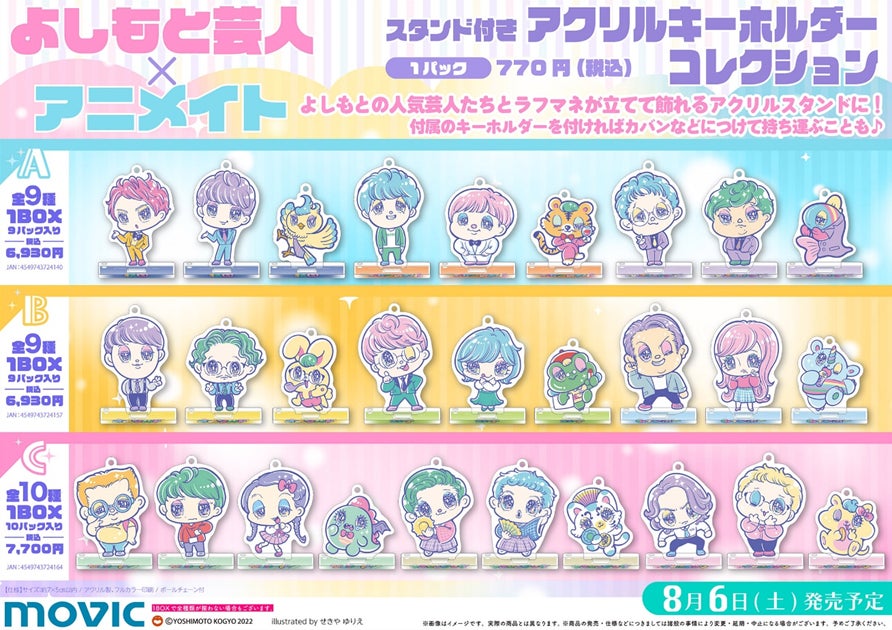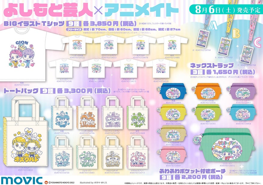 この度、アニメ・漫画・ゲームの専門店「アニメイト」と、よしもと芸人9組のコラボ商品を発売する事が決定致しました。