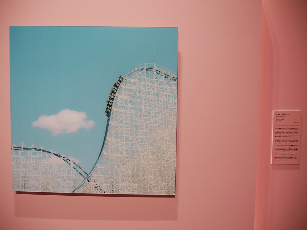 続いて、「Open Your Photo Album」エリアには、ノスタルジックな作品が集められています。海外の砂浜や観覧車など映画に出てきそうな素敵な写真が並ぶ中、どこか見覚えのあるジェットコースターが。クレジットを見ると、なんとナガシマスパーランドの写真で、改めてデザインとしての魅力にも気付かされました。