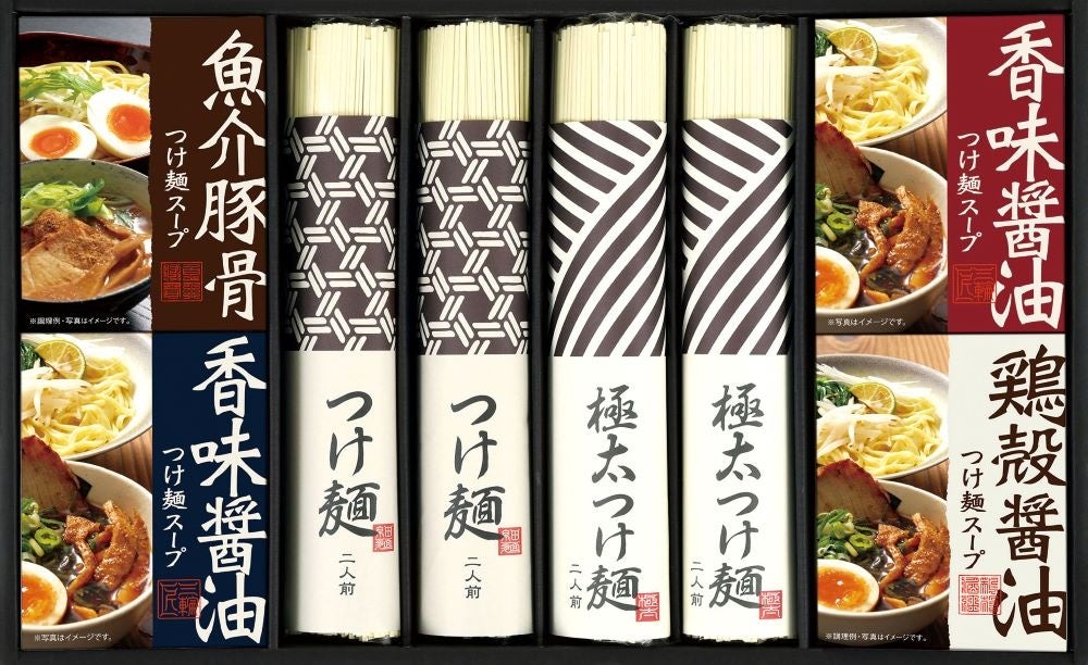 【内容】つけ麺180g×2、極太つけ麺180g×2、つけ麺スープ((鶏殻醤油27g・魚介豚骨40g)×2袋・香味醤油37g×4袋)の詰め合わせセットです。