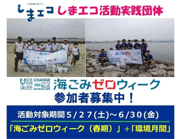 島根県環境政策課では環境保全活動への参加を推進しようと、5月27日(土)に始まる「春の海ごみゼロウィーク」と、6月の環境月間を活動期間として、エントリーや報告を募集しています。