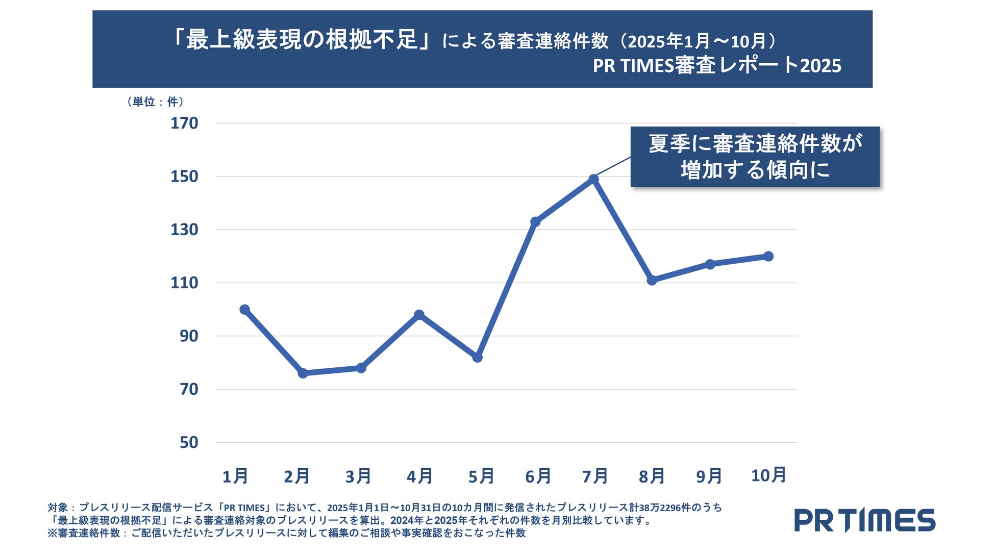 「最上級表現の根拠不足」による審査連絡が夏季に突出して増加傾向に