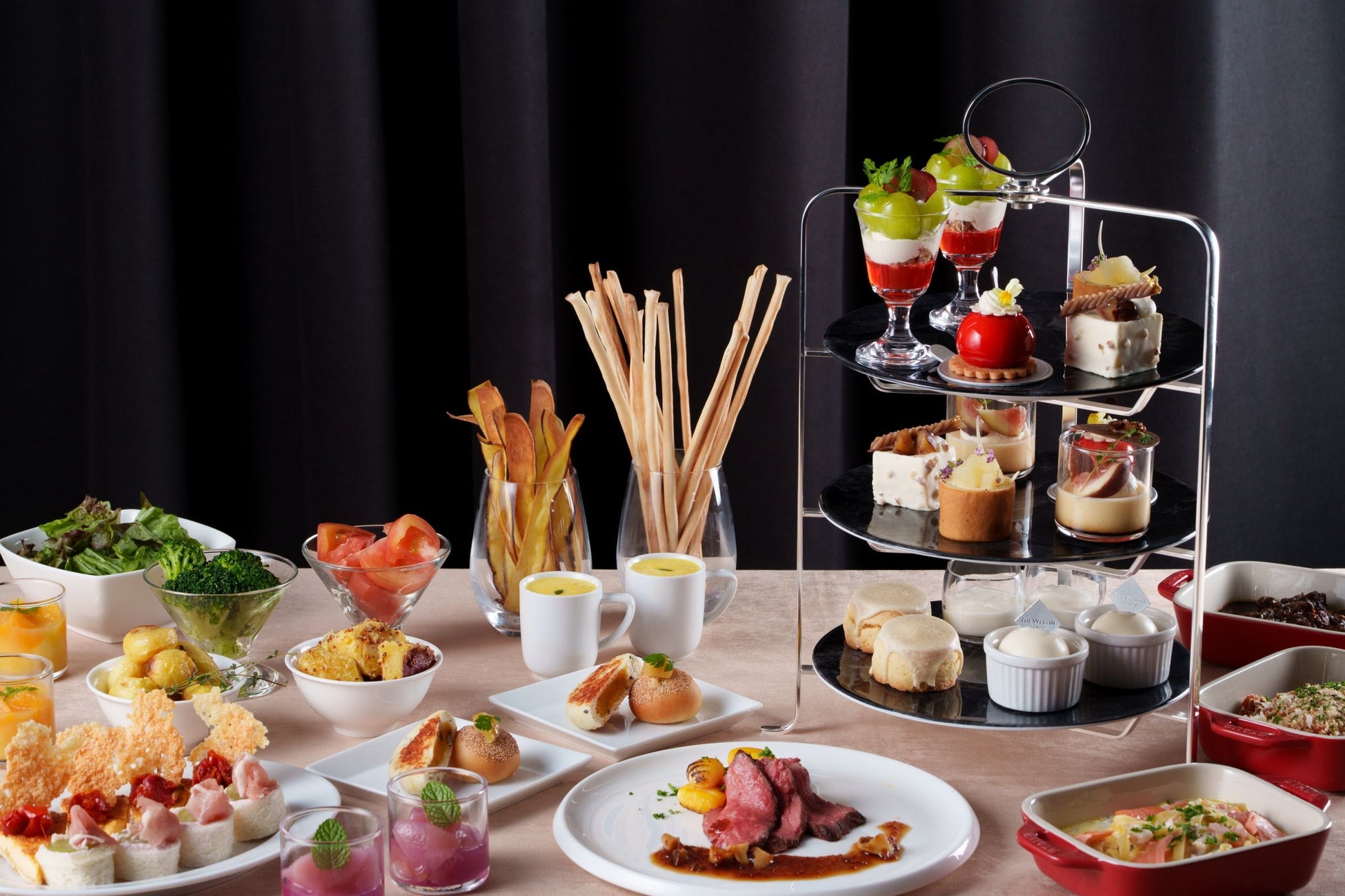 ティースタンドに盛り込んだ6種のスイーツとスコーンのほか、オーブンでゆっくりと火を入れたローストビーフをお席までお届けいたします。セイボリーやブレッド、ヴィーガンメニュー、パスタ、フルーツなどのブッフェメニューもラインナップ。フリーフローのドリンクとともに120分間、こころゆくまでお好きなだけお楽しみいただけます。