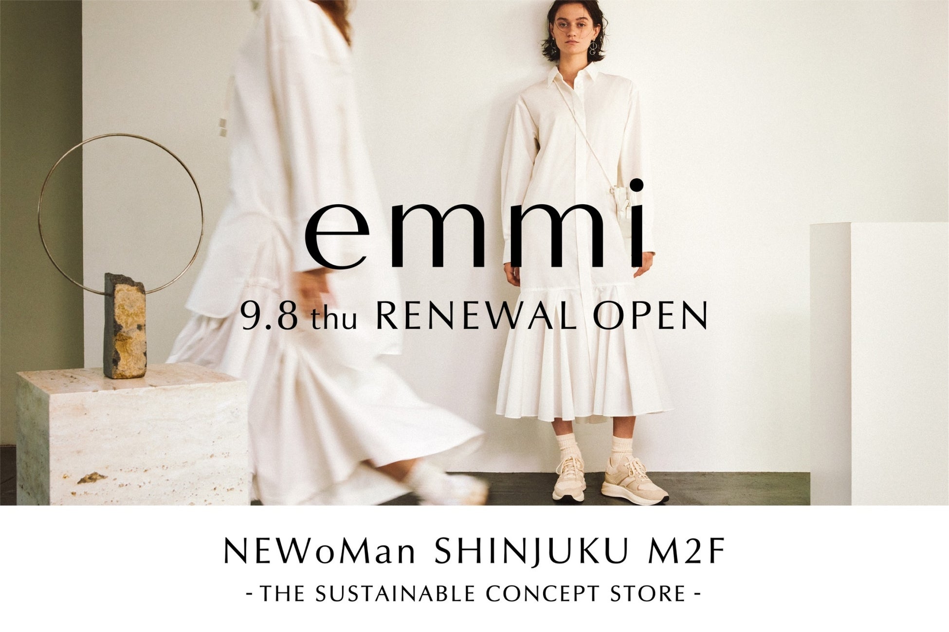 株式会社マッシュスタイルラボ(東京都千代田区/代表取締役社長 近藤広幸)が運営し、“クリアモード”をコンセプトに、ベーシック且つ洗練された大人のデイリーウェアとリラクシーなヨガウェアを展開する「emmi(エミ)」は、2022年9月8日(木)旗艦店であるNEWoMan新宿店をリニューアルし、サステナブルコンセプトストアとしてオープンいたします。リニューアルオープンを記念して、限定アイテムや先行アイテムを発売いたします。