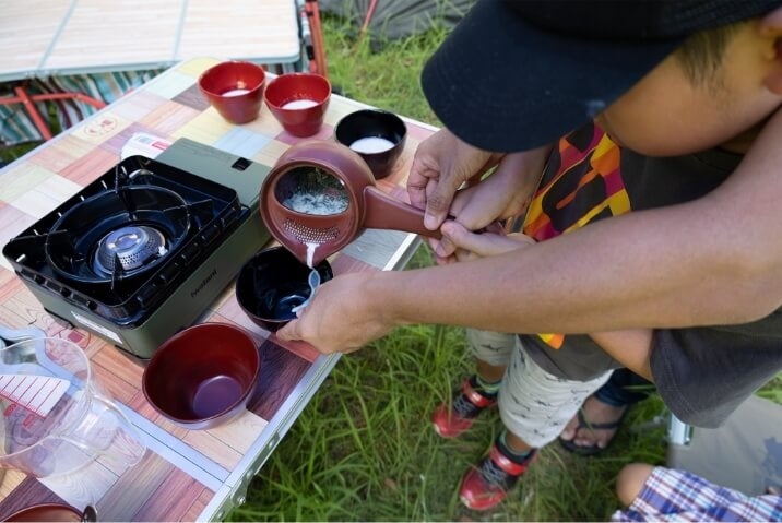Kiwakotoの野点道具を用いて、ご自身で一服のお茶を点てる体験をしていただけます。