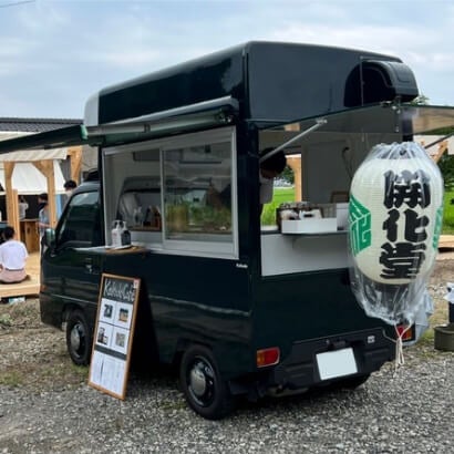 手作り茶筒の老舗・開化堂のカフェがキッチンカーで。訪れたすべての人を、親しく大切な人をお迎えする「開化堂の応接間」でありたいという想いでおもてなし。
