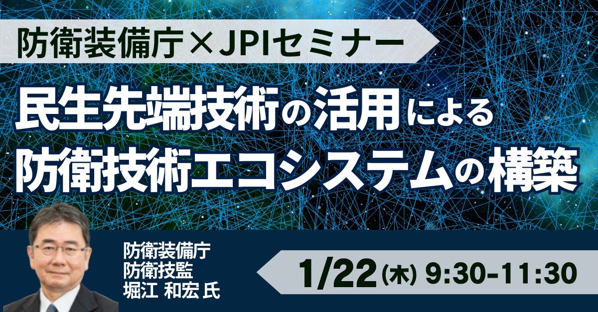 【JPIセミナー】防衛装備庁「民生先端技術の活用による防衛技術エコシステムの構築と研究開発に関する取り組みについて」1月22日(木)開催