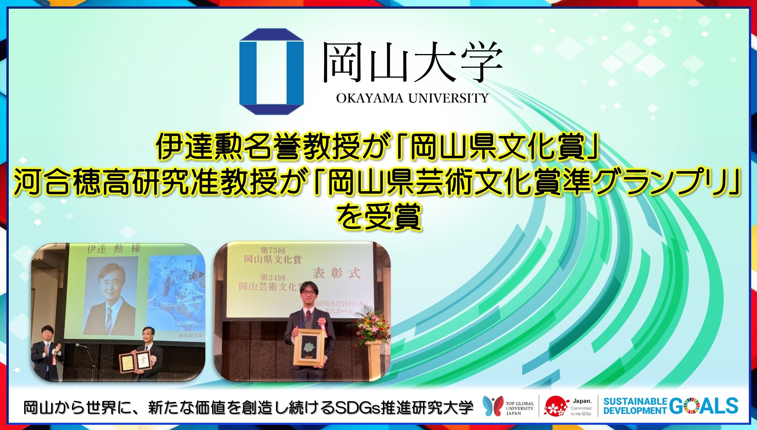 【岡山大学】伊達勲名誉教授が「岡山県文化賞」を、河合穂高研究准教授が「岡山県芸術文化賞準グランプリ」を受賞