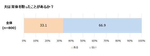 ・夫が育休を取ったことがあると回答したのは33.1%で、全体の約3分の1となった。