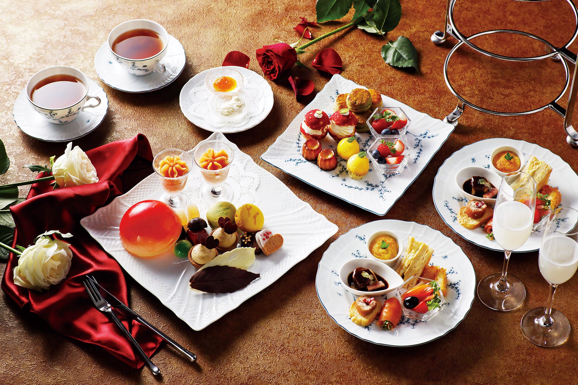 今回は、バレンタインにちなんだチョコレート菓子「ハート型クッキーのガナッシュサンド」、「フロマージュショコラのタルトレット」など14種類のスイーツに、「蟹と海老のシーフードグラタン」など7種類のセイボリーが加わった全21品をご用意。心も身体も温まるひとときを、メインバー「チッペンデール」のリュクスな空間でお愉しみいただきます。