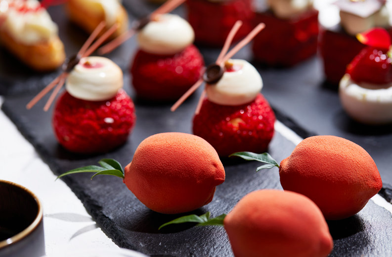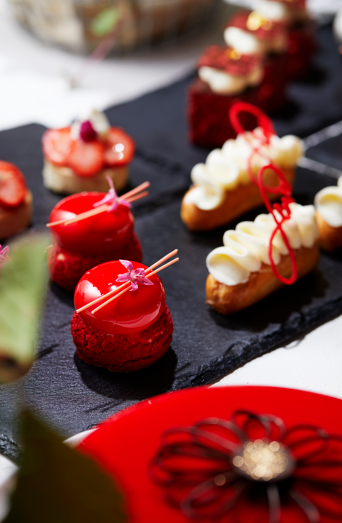 ブッフェのスイーツは、バーレーン王室やフランス、中東各国のラグジュアリーホテルにて豊富な経験を積んできた、当ホテルの新エグゼクティブ・ペストリーシェフ、イスラム・エルクハティブが手掛け、イチゴのおいしさをそのままに、「紫蘇とイチゴのティラミス」「柚子クリームとストロベリーコンフィのシュー・クラックラン」など和のエッセンスを取り入れたユニークなメニューを考案し、これまでにはない斬新で洗練された食体験をご提供いたします。