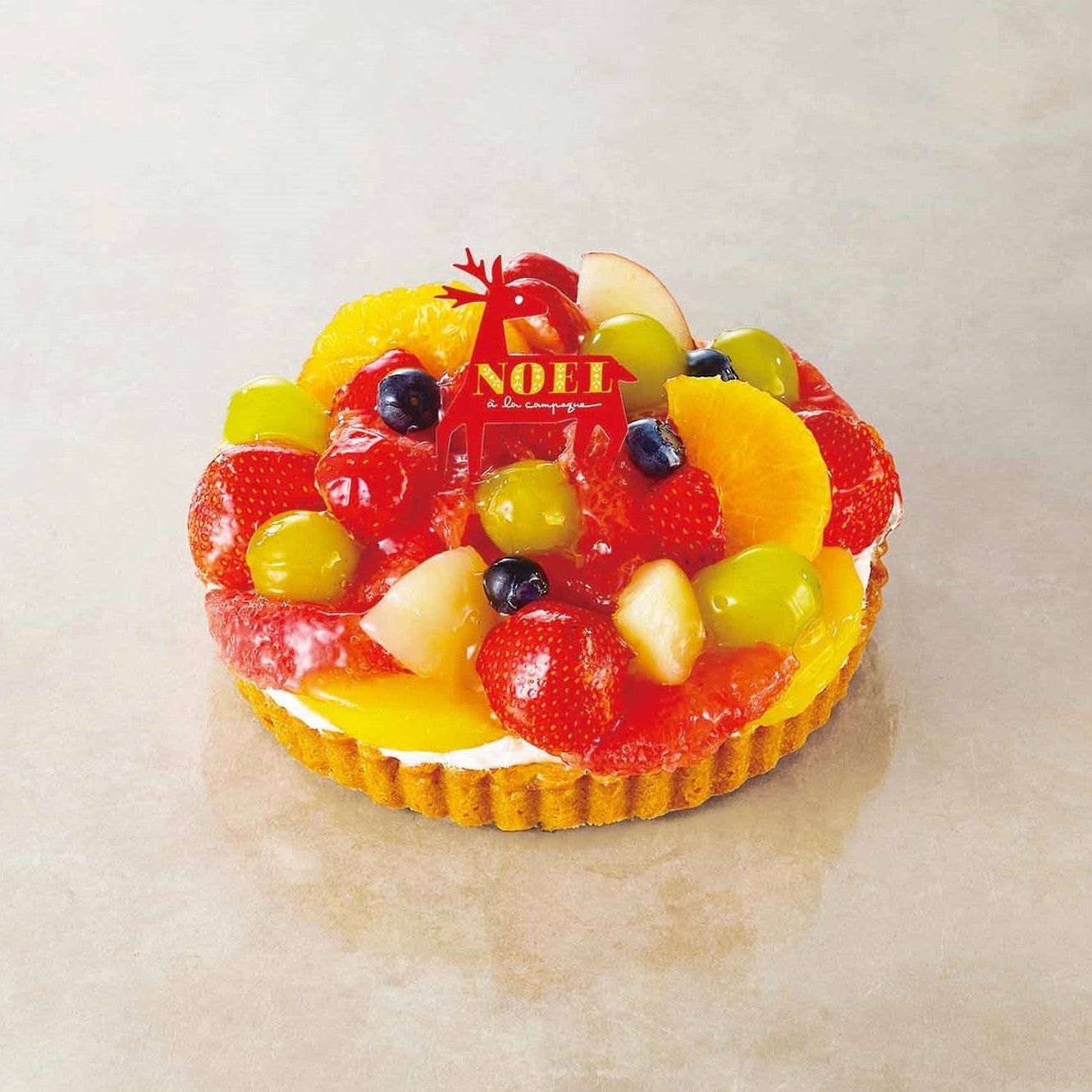 タルト生地にカスタードクリームと8種類のフルーツを色鮮やかに合わせたクリスマスタルト。
