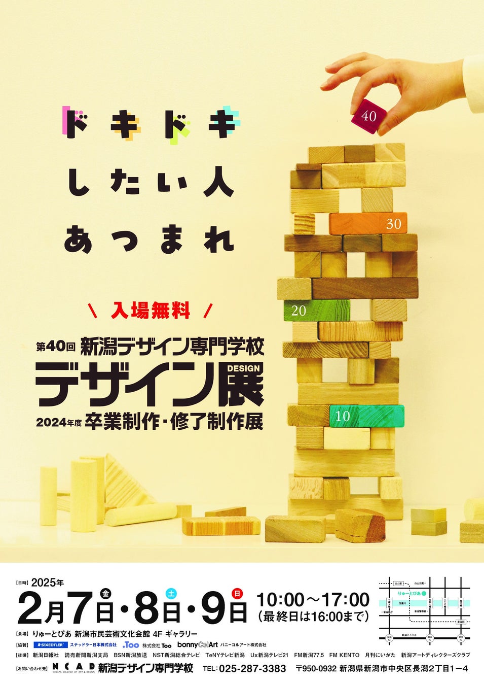 NSGグループの新潟デザイン専門学校では、2月7日(金)~9日(日)の3日間、りゅーとぴあ 新潟市民芸術文化会館にて卒業制作・修了制作展(通称:デザイン展)を開催します。