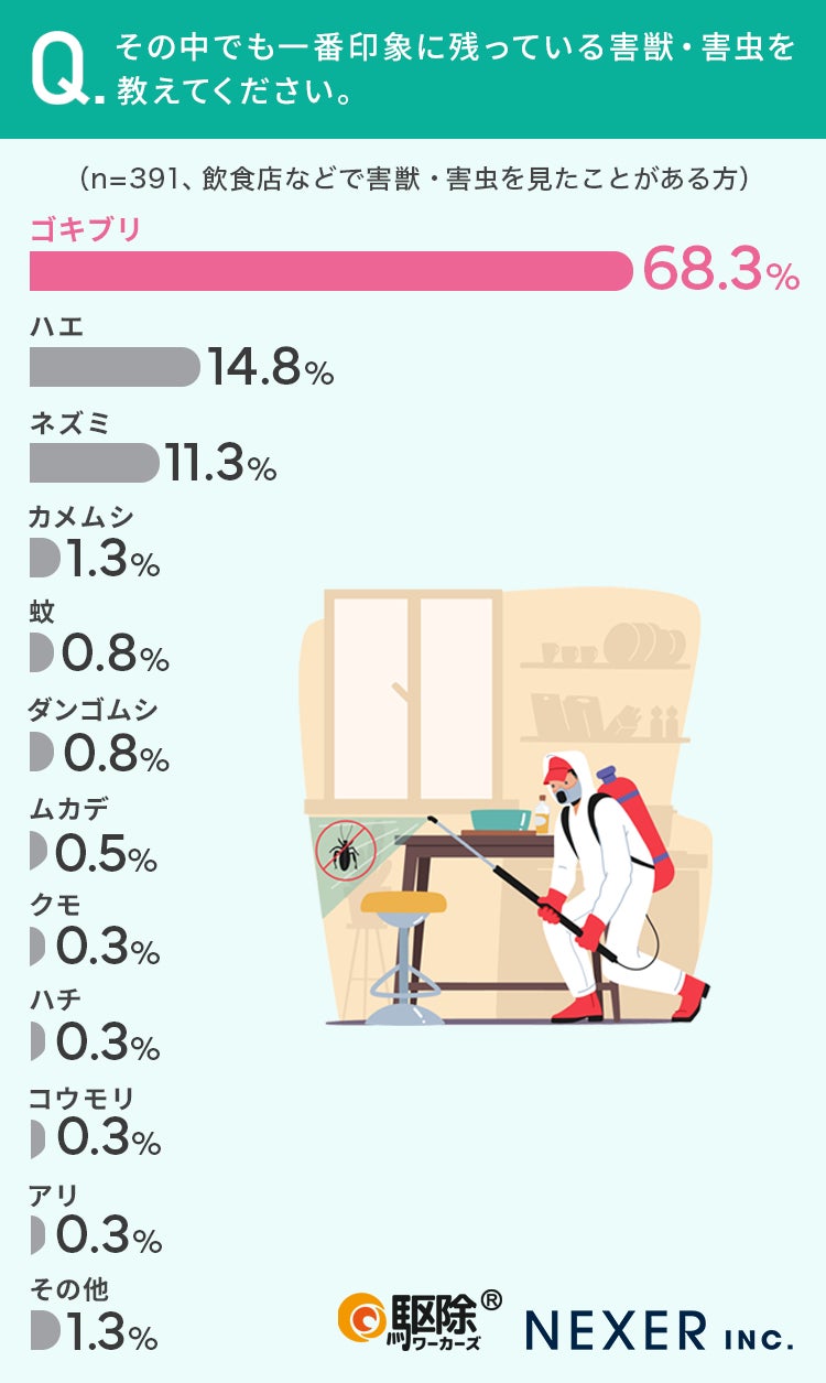 株式会社NEXER・飲食店で害獣・害虫を見た経験に関する調査