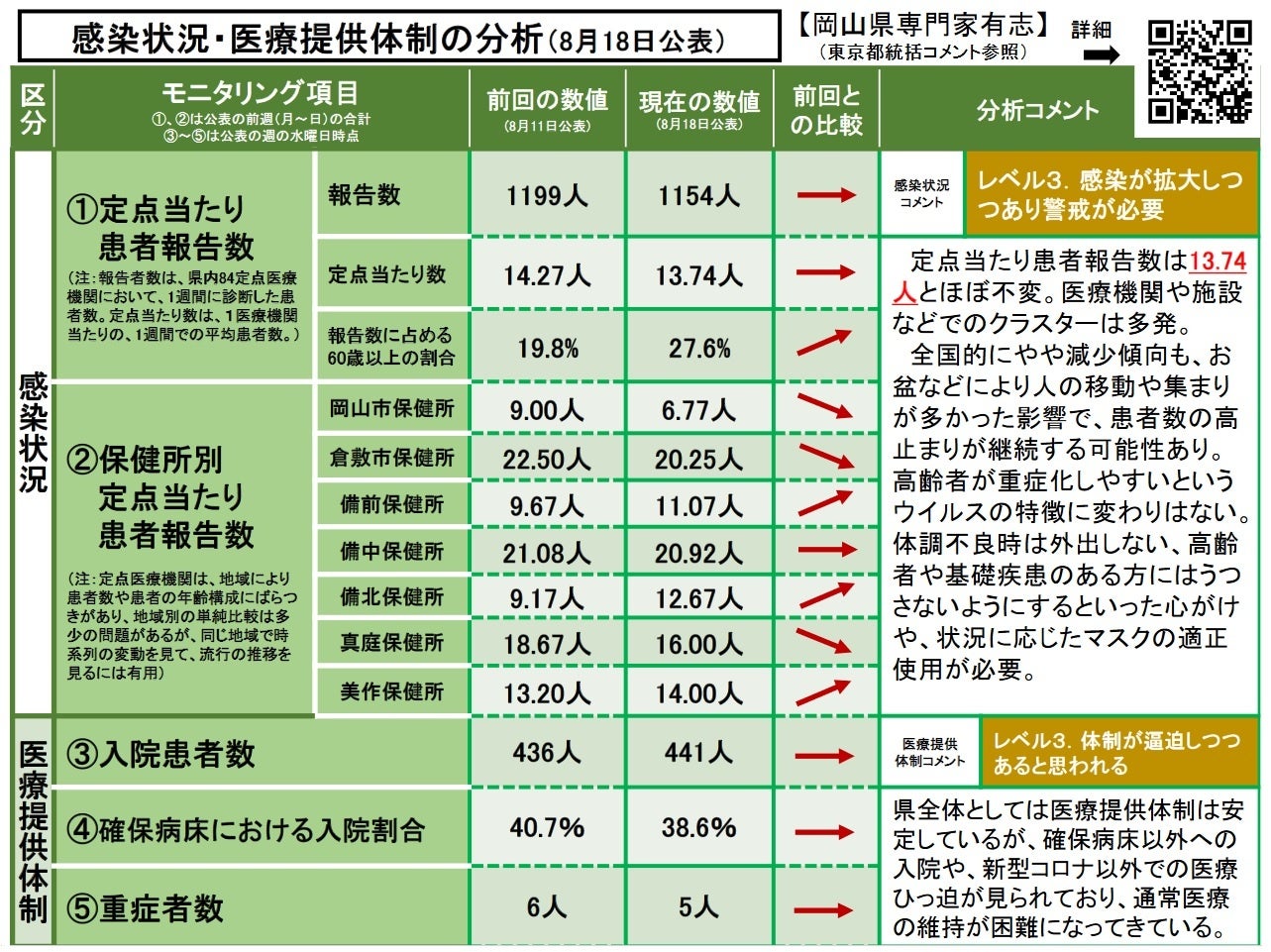 ・岡山県内の感染状況・医療提供体制の分析について(2023年8月11日現在)