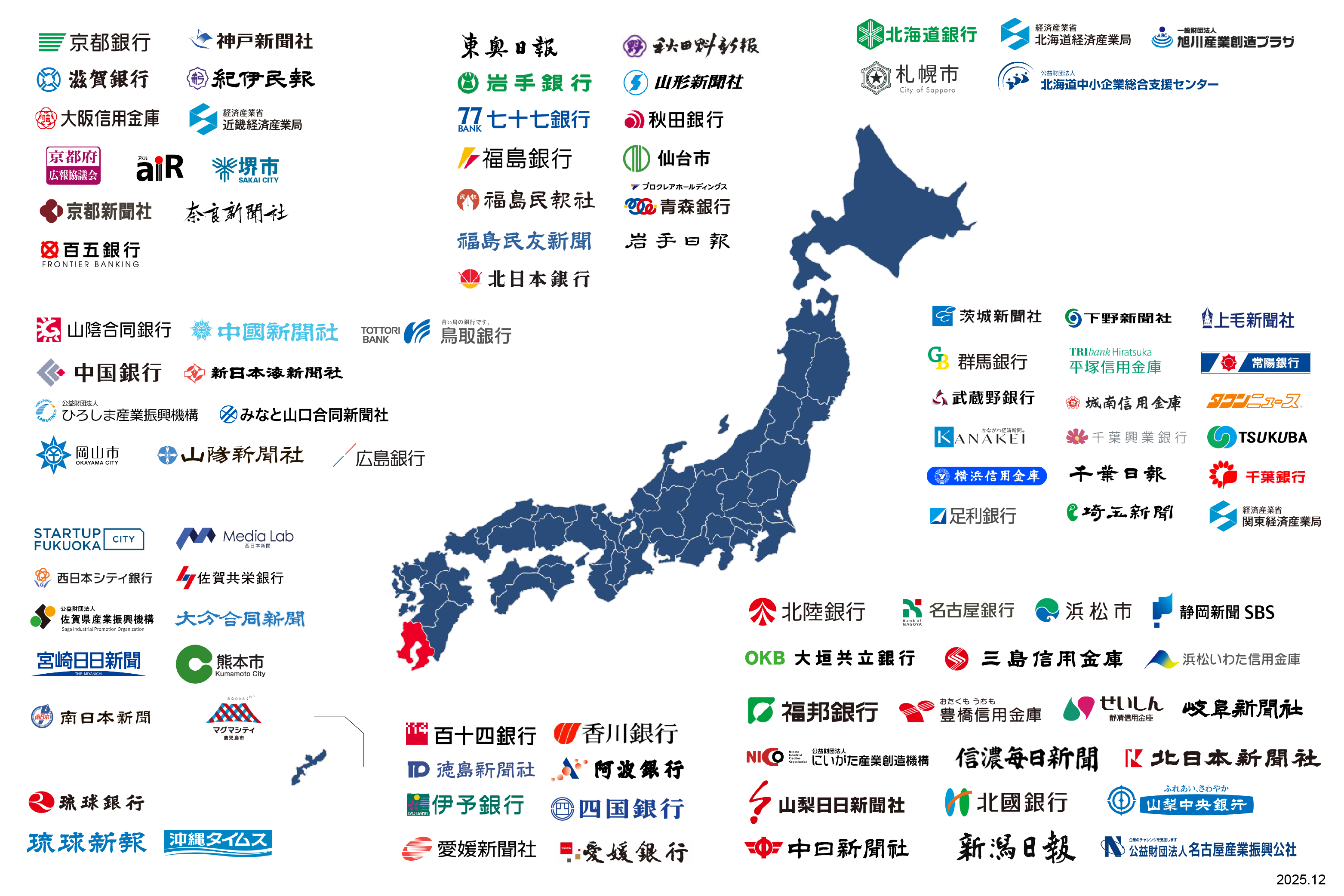 「PR TIMES」は、地方地域発の情報流通を目指し、全国各地域に根差す金融機関やメディア・自治体と提携を進めています。本協定の締結により、当社が地域企業や自治体等団体と地方情報流通に向けたアライアンスは全国47都道府県で100例以上に拡大するに至りました(地方金融機関43例(35行・8信金)、地方メディア38社、官公庁・自治体等1道1府3県11市4機関の合計101例)。