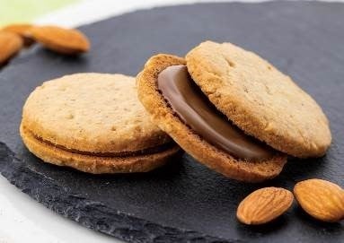 姿は地味なれど、おいしさは極めつき。焙煎アーモンドの実をどっさり焼き込んだ香ばし生地に、コク濃厚な炭火ショコラをとろりとはさみました。ポリポリザクザクかむほどに、旨味があふれ続けます。