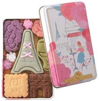 世界を旅したような気分を味わえる「ヴォヤージュサブレ」は全15種類。1番人気は「Paris」。エッフェル塔や凱旋門、ワインなどパリの気分を味わって。