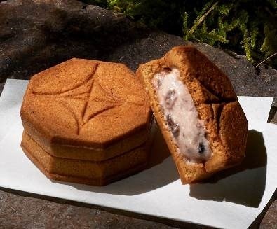 国産きな粉と国産の米粉を練り込んだクッキー生地を八角形の特注プレス機ではさみ焼きしました。他にない“サクほろ”食感がたまらない!
