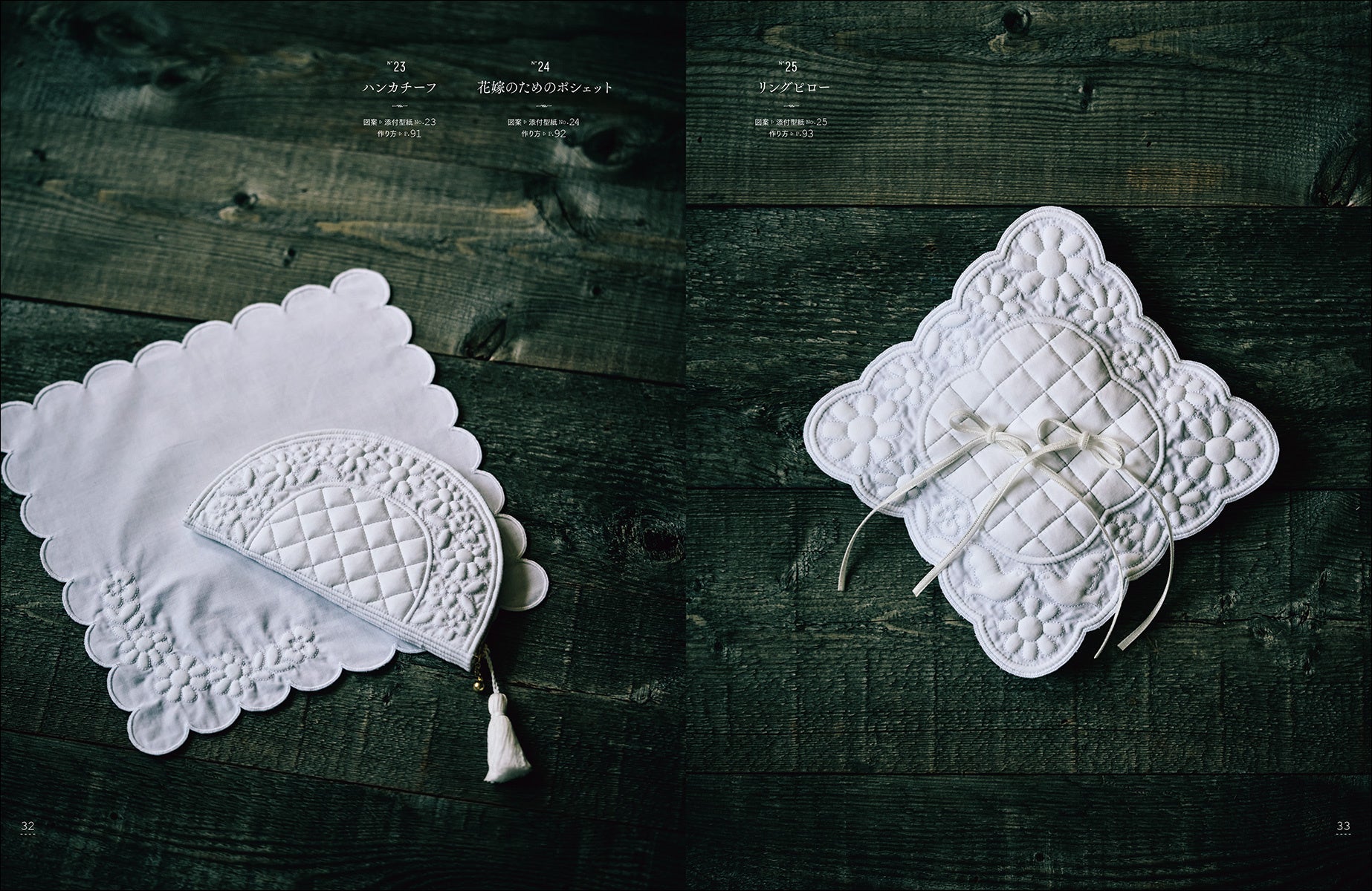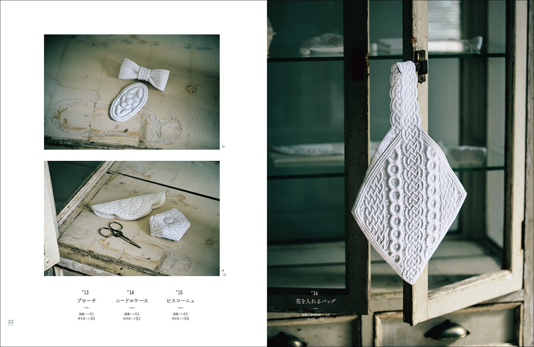 本書では、バッグ、ポーチ、テーブルセンター、つけ襟など暮らしで使える身近なアイテムを中心に25点の作り方を紹介します。