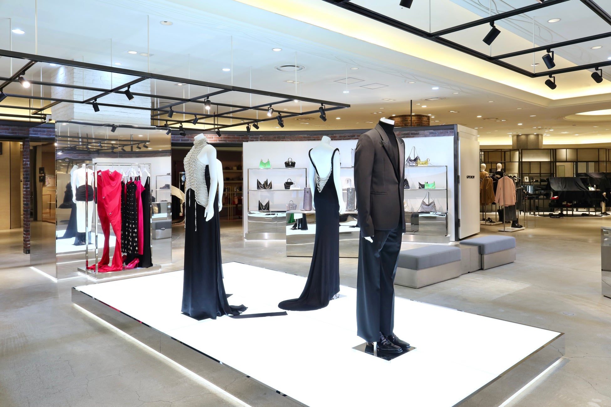ファッション好きでモードラバーな顧客で賑わう3階婦人服売場(モード)を進むと、見えてくるのは約200㎡のダイナミックなサークル型没入空間『POP UP CIRCUS』。この時しか味わえないモノ・コト・サービスなど、ここだけのショッピング体験をマンスリーで紹介します。オープニングの10月度は「ジバンシィ」。2023年秋冬コレクションを映し出す大型メタルスクリーンを抜け、中に足を踏み入れると世界観が一変する空間でお迎えし、ここだけの特別な世界を体感いただけます。