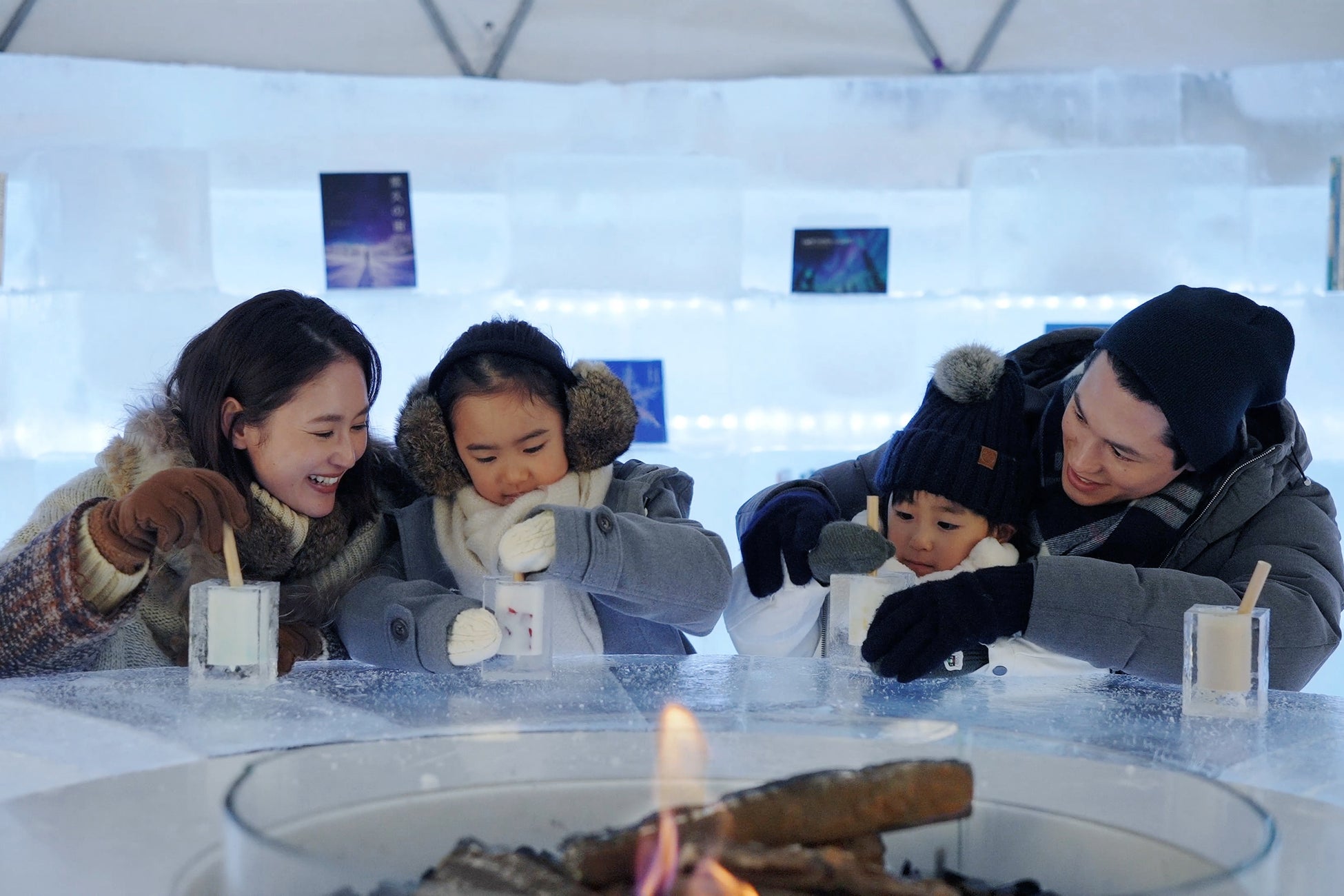 氷と雪でできた街が広がる幻想的な空間。氷のすべり台やショップなど、遊びながら雪国の世界観を体験できます。
