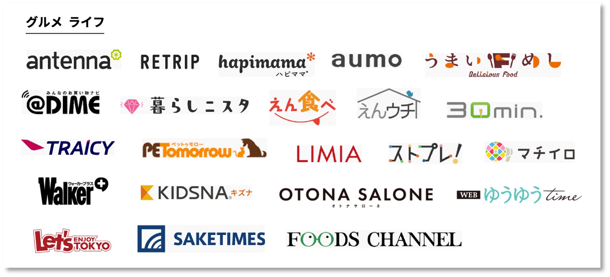 今回の「レッツエンジョイ東京」との連携に伴い、「PR TIMES」パートナーメディアは総計268メディアとなります。なお「レッツエンジョイ東京」のような、生活や食に関わる情報を幅広く取り上げる「グルメ・ライフ」カテゴリは合計22メディアです。