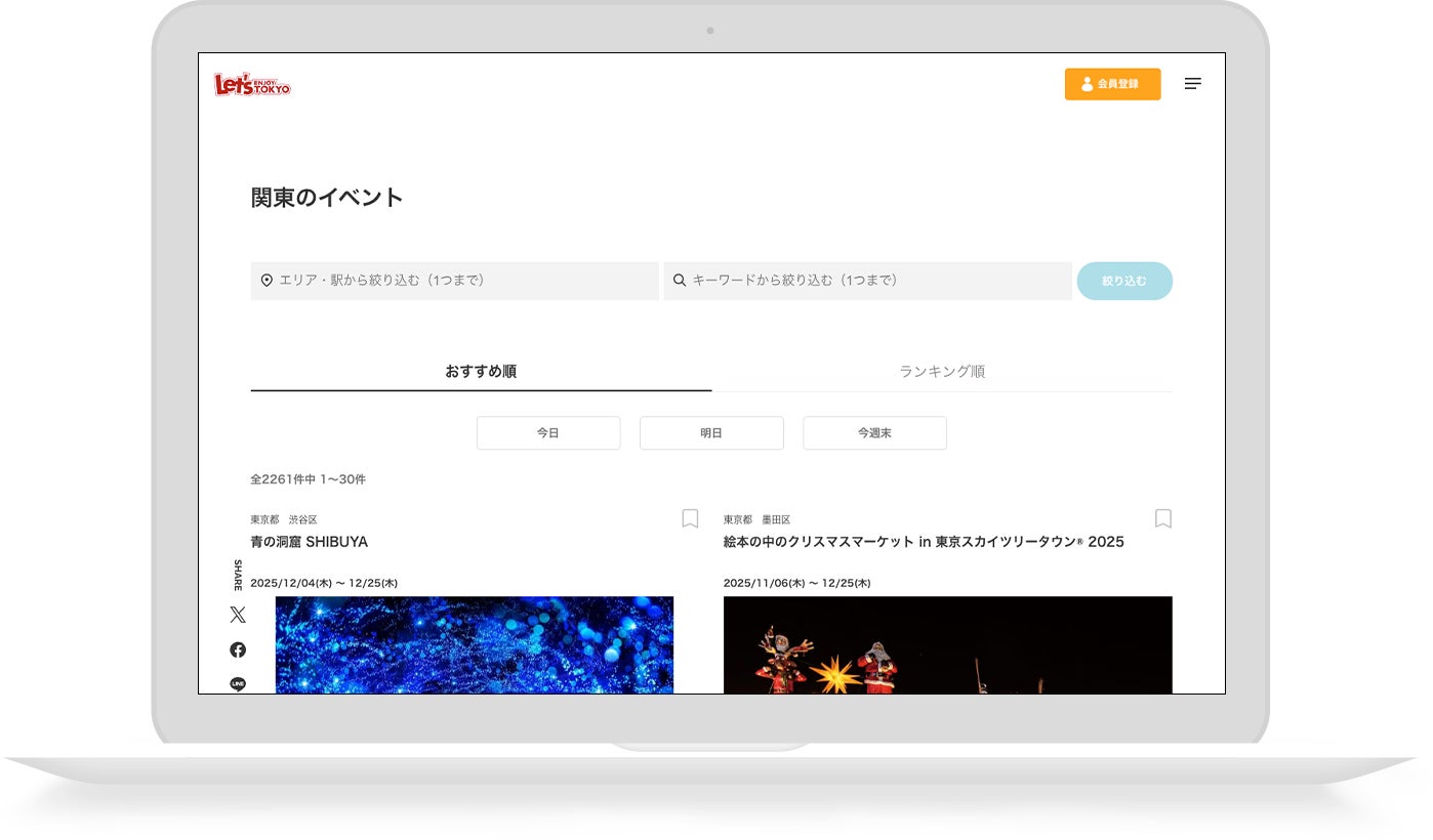 レッツエンジョイ東京は、「おでかけをもっと楽しく、もっと便利に」をコンセプトに、東京都内の池袋、渋谷、上野などの人気エリアを中心に、埼玉、神奈川、千葉各県のイベント情報も幅広く掲載しています。単なる店舗検索にとどまらず、「おでかけ」の目的やシーンに合わせて、いつ何が行われるかという情報が得られるサイトです。店舗・施設の新規開店情報から、「デート」「ソロ活」「体験・遊び」といったテーマ、お花見や秋祭りなどの季節に応じた特集記事、編集部のピックアップ情報など、多様なコンテンツを提供しています。アプリやオリジナルイベントの運営に加え、フリーペーパー「TOKYO TREND RANKING」も発行しており、様々な媒体を通じて、1都3県に住む方々や訪れる方々に、おでかけ情報を届けています。