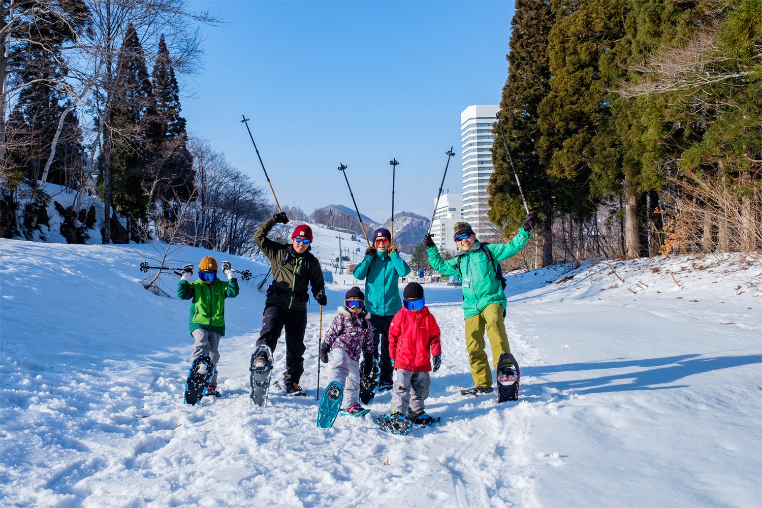 みんなで楽しめる絶景スノーシューツアーを開催。お子さまだけのツアー「キッズ雪遊びアカデミー」や室内クラフト体験も人気です。