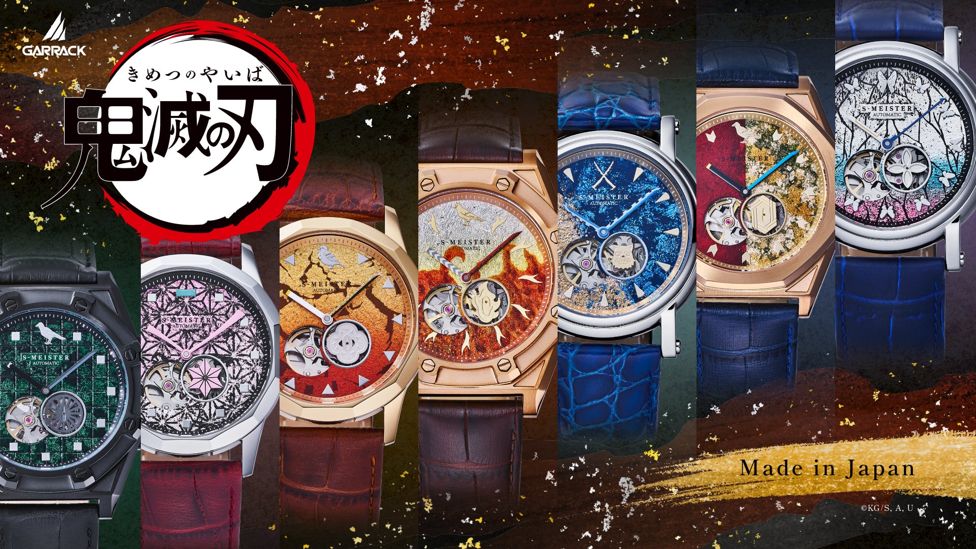 アニメ「鬼滅の刃」コラボ 金沢箔を使用した日本製機械式時計がGARRACKから発売。竈門炭治郎、竈門禰󠄀豆子、我妻善逸、煉󠄁獄杏寿郎、嘴平伊之助、冨岡義勇、胡蝶しのぶ の7型を5月9日に予約開始。
