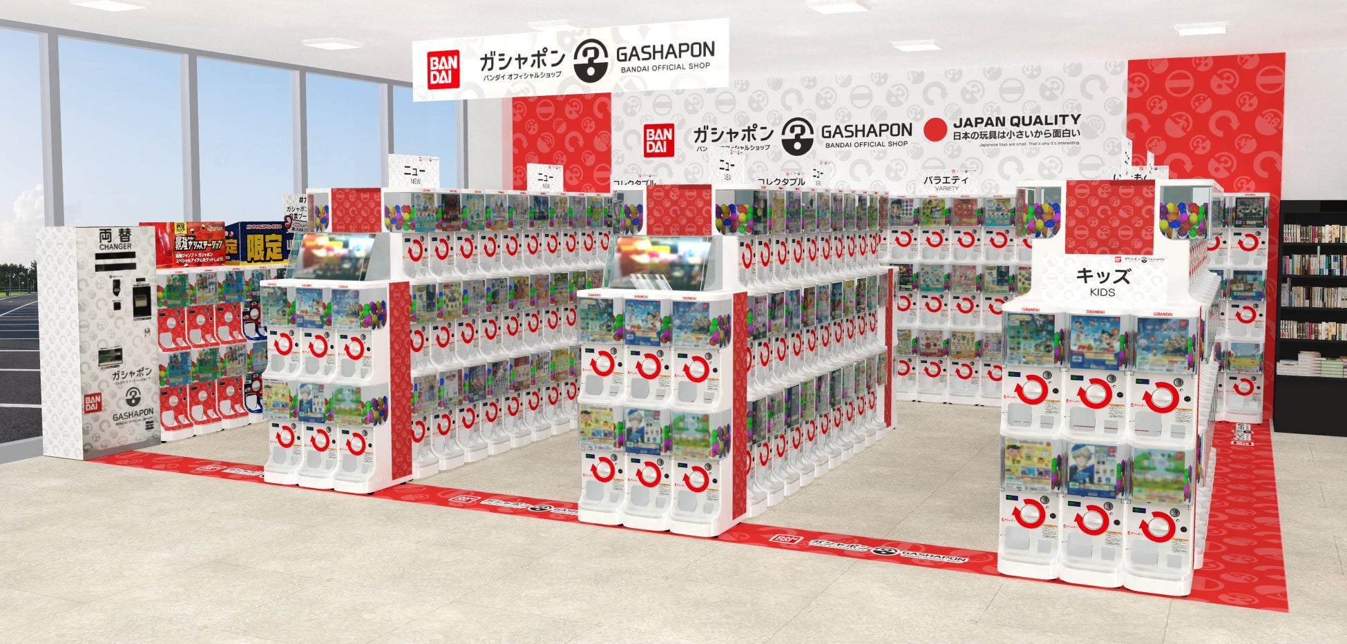 近年カプセルトイ業界では、大型のカプセルトイ専門店が増加し、身近なエンターテインメントとして多くのお客さまに楽しまれています。バンダイのオリジナルのカプセルトイブランドである「ガシャポン」ならではの「ワクワク体験」と「ユニークな商品」をファンの皆さまに向けて直接お届けしたいという思いから、バンダイと大型カプセルトイ専門店の運営ノウハウを持つバンダイナムコアミューズメントが協業で当店舗を出店します。