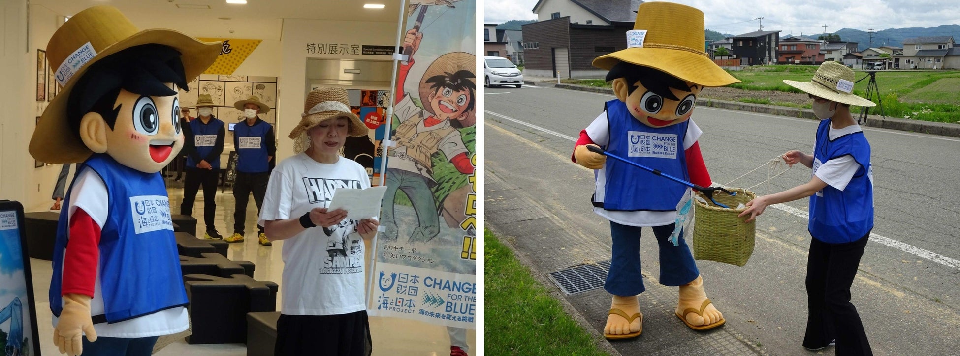 「海と日本PROJECT・CHANGE FOR THE BLUE」あきたの海ごみゼロへ!誕生!釣りキチ三平ごみ拾い隊 着ぐるみ 三平くんお披露目&増田町清掃活動を実施しました。