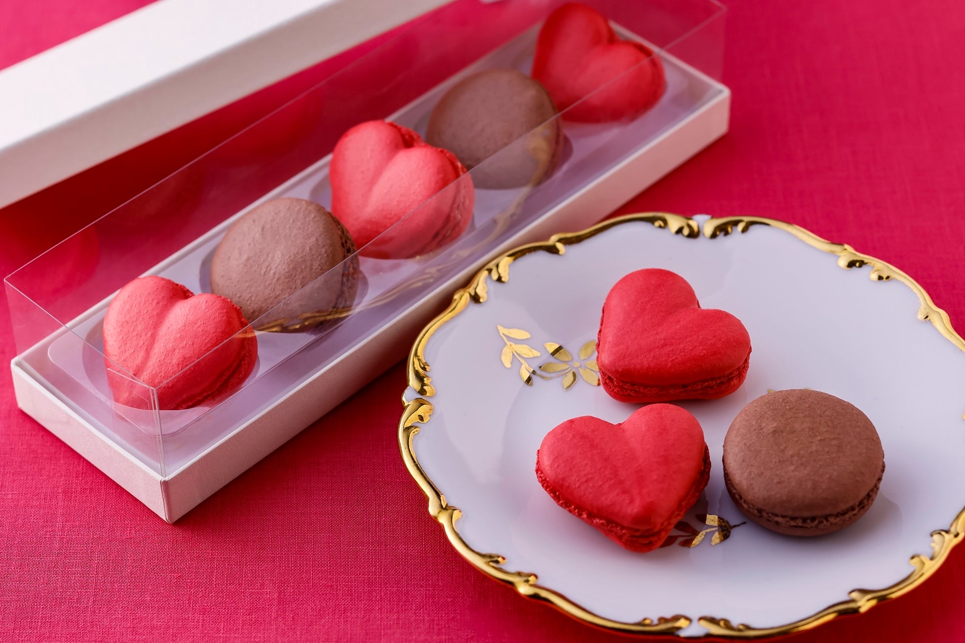 しっとりやわらかな生地の食感と、甘くなめらかなクリームのハーモニーを追求した、ホテルパティシエ特製のオリジナルマカロンが新登場。バレンタインデーに合わせて、味わい深い濃厚なガナッシュクリームをサンドしたチョコレートと、甘酸っぱい美味しさが広がるフランボワーズの2種のフレーバーをセットしました。大切な方への贈り物や、自分へのご褒美にもおすすめです。