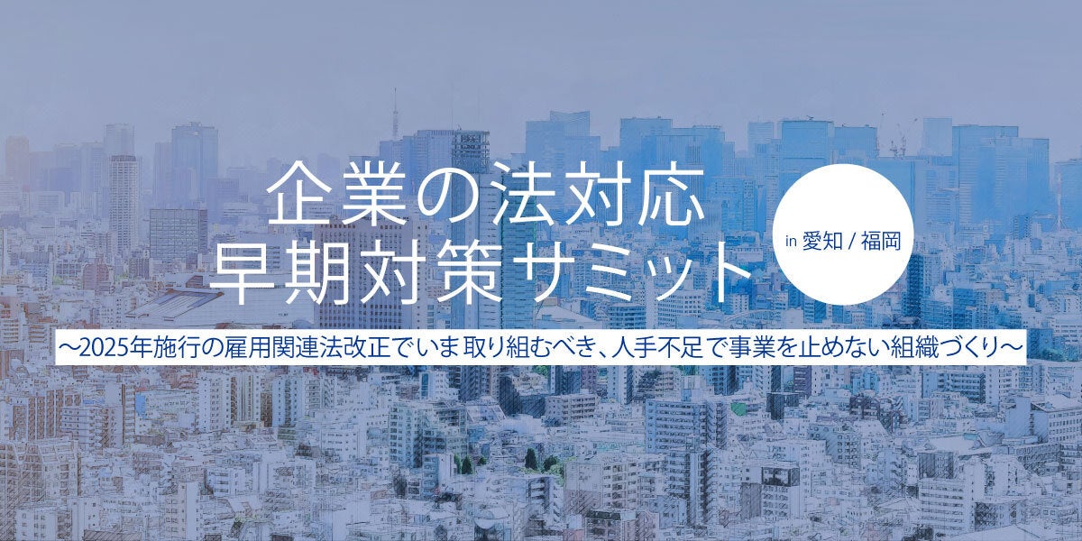 ・イベントタイトル:経営者・管理部門のための企業の法対応 早期対策サミット2024 in 愛知/福岡〜2025年施行の雇用関連法改正でいま取り組むべき、人手不足で事業を止めない組織づくり〜